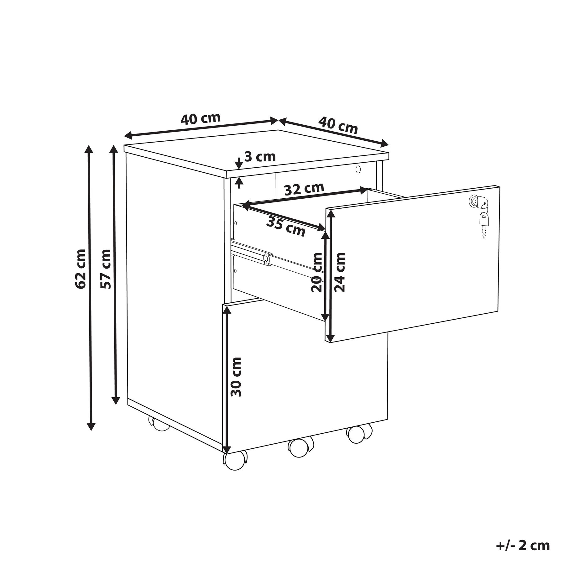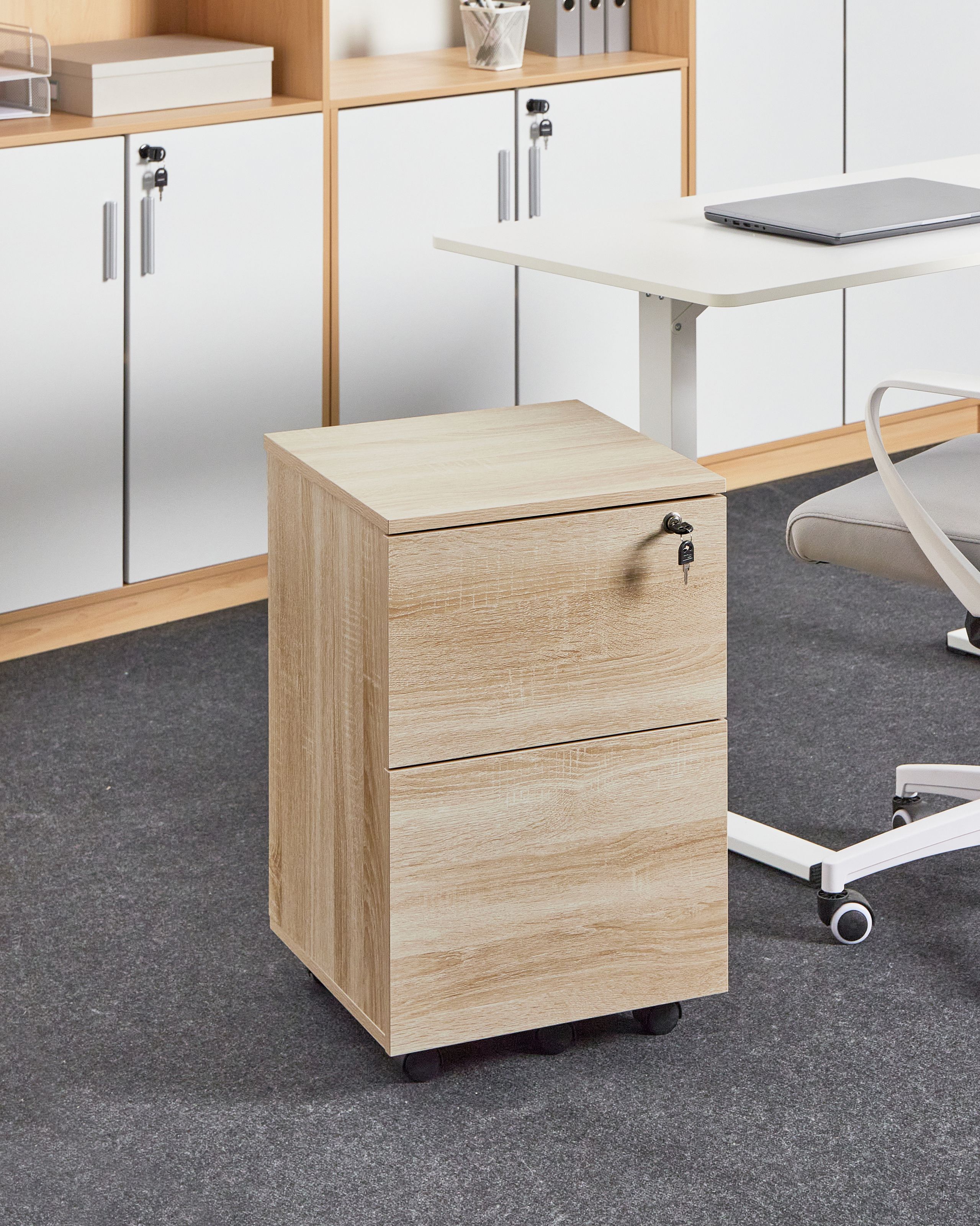 Lukittava säilytyslaatikosto. Nauti toimivasta eleganssista missä tahansa tällä käytännöllisellä laatikostolla, joka sopii erinomaisesti kaikenlaisiin toimistoihin. Vaaleanruskea, puunsävyinen viimeistely tuo tilaan skandinaavista hienostuneisuutta. Kaksi tilavaa laatikkoa, joista toinen on lukittavissa, tarjoavat paikan asiakirjoille tai muille toimistotarvikkeille. Sulavasti rullaavat pyörät mahdollistavat helpon siirtelyn tarpeen mukaan. Laatikosto tuo työtilaan saumattoman yhdistelmän tyyliä ja mukavuutta.