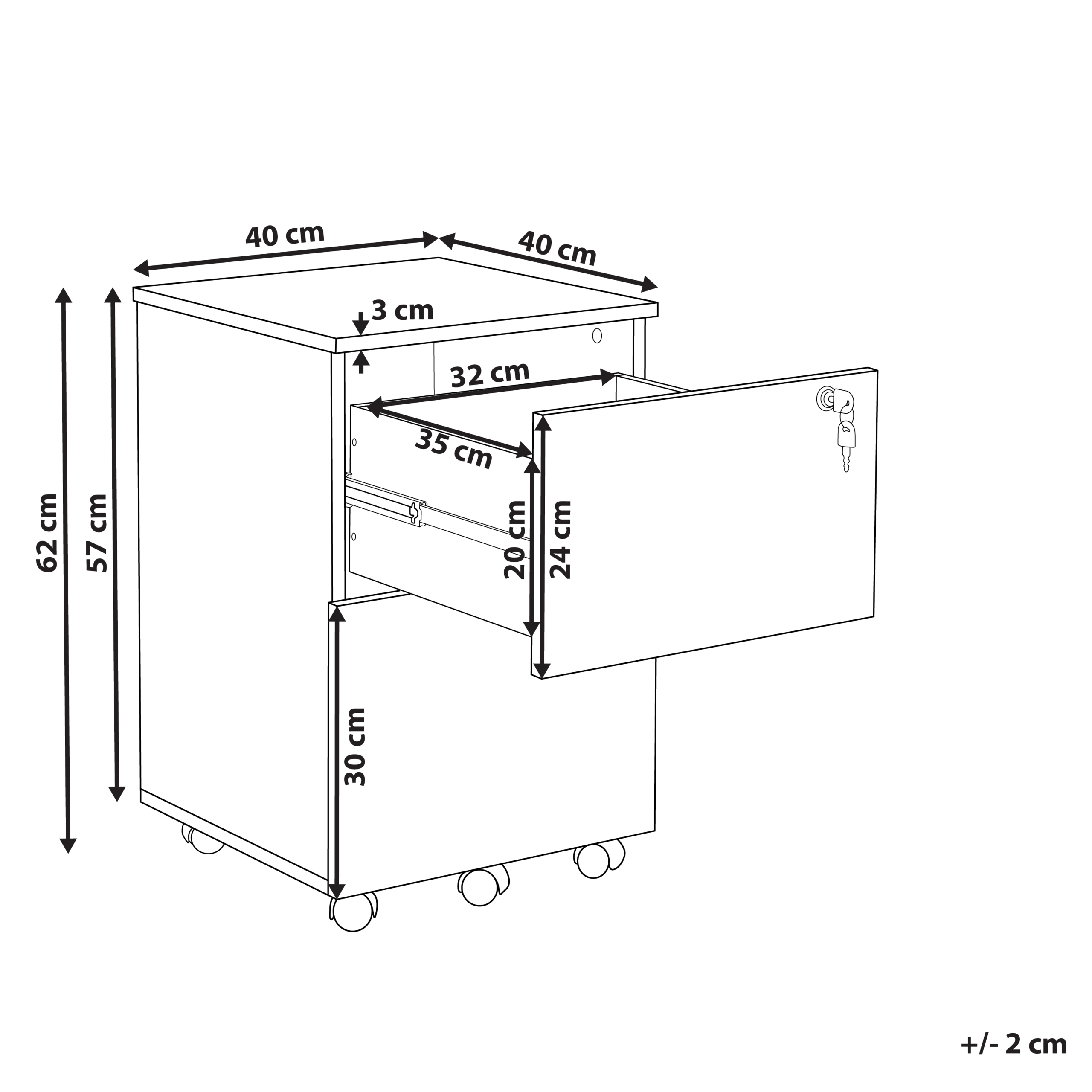 Lukittava säilytyslaatikosto. Nauti toimivasta eleganssista missä tahansa tällä käytännöllisellä laatikostolla, joka sopii erinomaisesti sekä kotitoimistoon että olohuoneeseen. Klassisen valkoinen viimeistely tuo tilaan skandinaavista hienostuneisuutta. Kaksi tilavaa laatikkoa, joista toinen on lukittavissa, tarjoavat paikan asiakirjoille tai muille toimistotarvikkeille. Sulavasti rullaavat pyörät mahdollistavat helpon siirtelyn tarpeen mukaan. Laatikosto tuo työtilaan saumattoman yhdistelmän tyyliä ja mukavuutta.