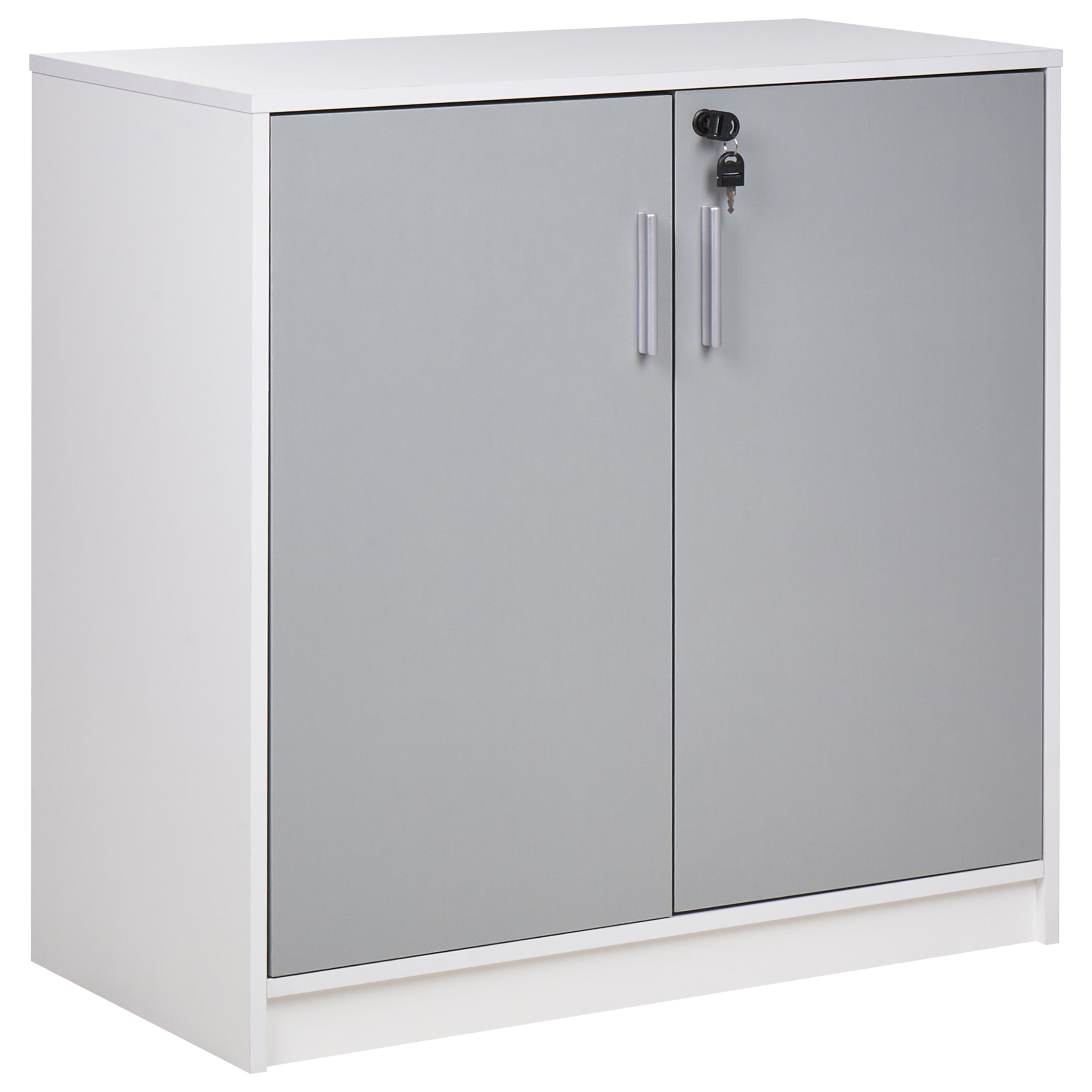 Tyylikäs lukittava toimistokaappi. Nauti järjestyksessä olevasta kotitoimistosta tai olohuoneesta tällä toimistokaapilla, joka on valmistettu kestävästä lastulevystä. Kaksi avaimella lukittavaa ovea kätkee taakseen kaksi tilavaa hyllyä, jotka sopivat asiakirjojen siistiin ja turvalliseen säilytykseen. Kohota työtilasi ilmettä, heitä hyvästit kaaokselle ja anna uusien ideoiden kukoistaa.