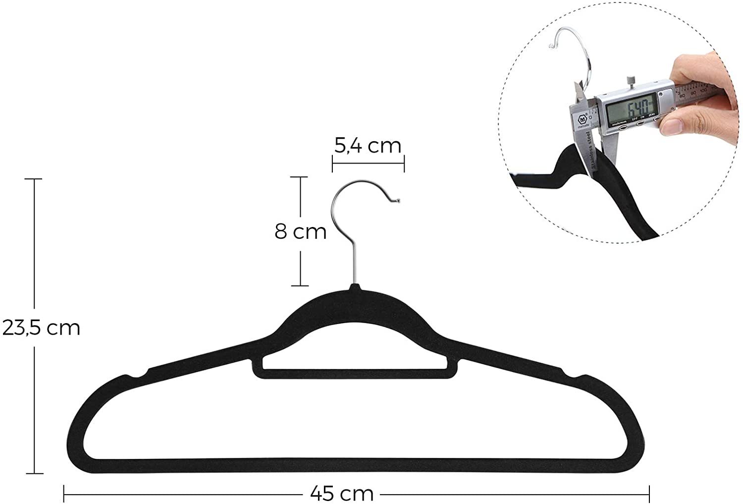 - Yhden henkarin mitat: 45 x 0,6 x 23,5 cm (leveys x syvyys x korkeus)