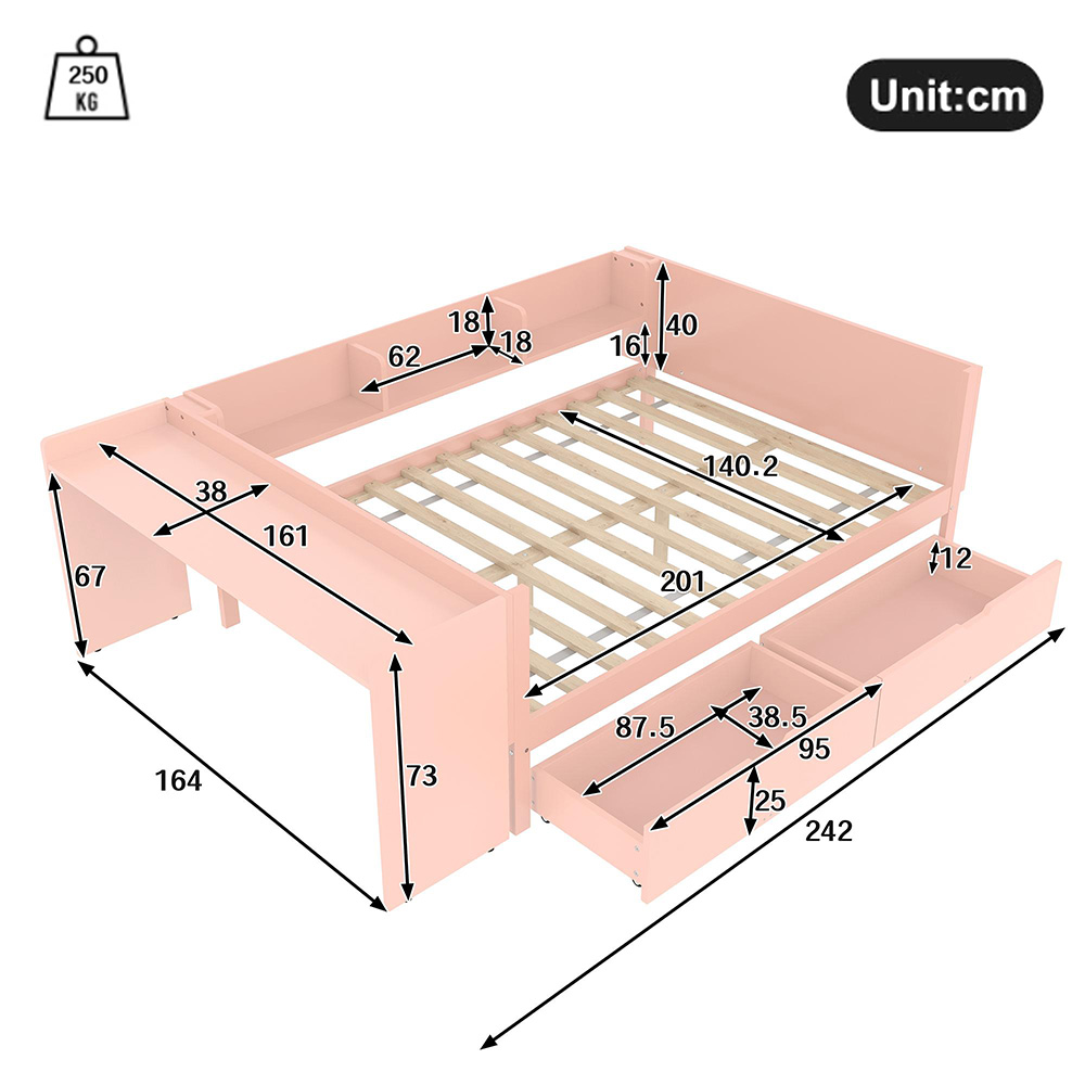 https://www.hobbybox.fi/sanky-140x200cm-2-laatikolla-vaaleanpunainen-sku3p-bd67d7fe9522Sänky 140x200 cm, 2 laatikolla, vaaleanpunainenhttps://www.hobbybox.fi/media/catalog/product/a/d/adc859769006b240.jpg00EUROutOfStockKOMHTOM/Furniture/Beds & Accessories/Beds & Bed Frames6213<p>Tämä laadukas KOMHTOM-sänkypaketti tarjoaa käytännöllistä säilytystilaa ja lisää järjestystä makuuhuoneeseesi. Kestävästä puusta ja vahvoista metalliosista valmistettu sänky sopii monenlaisiin koteihin ja pitää arkiesineet käden ulottuvilla. Monipuolinen rakenne tekee siitä hyvän ratkaisun etenkin pieniin tiloihin.</p><h3>Tekniset tiedot:</h3><ul><li>Rungon materiaali: mänty ja lastulevy</li><li>Väri: vaaleanpunainen</li><li>Vuoteen sisämitat: 140 x 200 cm</li><li>Tuotteen kokonaismitat: 242 x 164 x 73 cm</li><li>Korkeus: 73 cm</li><li>Korkeus patjalle: suositus 10–15 cm (patja ei sisälly)</li><li>Kestävyys: 250 kg</li><li>Hyllyjä: 3 kpl</li><li>Piilotetut laatikot vuoteen alla: kyllä</li><li>Toimitetaan kolmessa paketissa, jotka voivat saapua eri aikaan</li><li>Kokoaminen: vaatii kokoamista (tarvittavat osat ja ohjeet mukana)</li></ul><h3>Ominaisuudet:</h3><ul><li>Tilava vuode ja piilotetut laatikostot helpottavat kodin järjestämistä</li><li>Kestävät materiaalit varmistavat pitkäikäisyyden ja vakauden käytössä</li><li>Kolme hyllyä tarjoavat lisäsäilytystilaa arjen tarpeisiin</li><li>Monikäyttöinen ratkaisu pieniin tiloihin työskentelyyn, opiskeluun ja lepäämiseen</li><li>Helppo koota mukana tulevien ohjeiden avulla</li></ul><p>KOMHTOM-sänkypaketti on käytännönläheinen valinta sinulle, joka arvostat sekä tilansäästöä että kodin järjestystä. Sänky on suunniteltu arjen tarpeisiin, ja sen vankat materiaalit takaavat luotettavan käytön pitkään. Vaaleanpunainen väri tuo pehmeää ilmettä makuuhuoneeseen ja sopii monen sisustustyylin rinnalle.</p><p>Vuoteen alla olevat piilotetut laatikot ovat mainio ratkaisu vaatteiden, kirjojen ja muiden tavaroiden säilyttämiseen. Jokainen esine löytää helposti paikkansa ja huoneesi pysyy siistinä ilman ylimääräistä vaivaa. Kolme hyllyä sängyn vieressä tekevät tärkeistä tavaroista helposti saatavilla – olipa kyseessä lukuhetki, koriste-esineet tai laitteet.</p><p>Tämä pöytä-sänky-yhdistelmä sopii hyvin pieneen asuntoon, jossa tilaa ei ole liikaa. Sänky yhdistää nukkumisen, työskentelyn ja vapaa-ajan yhteen paikkaan. Hyllyt toimivat myös lukutilana ja auttavat pitämään arjen hallinnassa. Tilankäyttö on tehokasta, eikä tarvita ylimääräisiä kalusteita.</p><p>Kokoaminen on sujuvaa selkeiden ohjeiden ja kaikkien tarvittavien osien ansiosta. KOMHTOM-sänkypaketti toimitetaan kolmeen erilliseen pakettiin ja asennus onnistuu nopeasti. Tämän ratkaisun avulla makuuhuoneesi pysyy siistinä, käytännöllisenä ja viihtyisänä arjessa.</p>EUR00https://www.hobbybox.fi/media/catalog/product/a/d/adc859769006b240.jpg?width=320&height=440https://www.hobbybox.fi/media/catalog/product/7/d/7dc53cf33e5c1b5a.jpg?width=320&height=440https://www.hobbybox.fi/media/catalog/product/7/3/7371f8c6473d65c5.jpg?width=320&height=440https://www.hobbybox.fi/media/catalog/product/e/9/e9fa4ba8c7f25b15.jpg?width=320&height=440https://www.hobbybox.fi/media/catalog/product/1/8/18f257f60f95e2b5.jpg?width=320&height=440add-to-cartKOMHTOM
