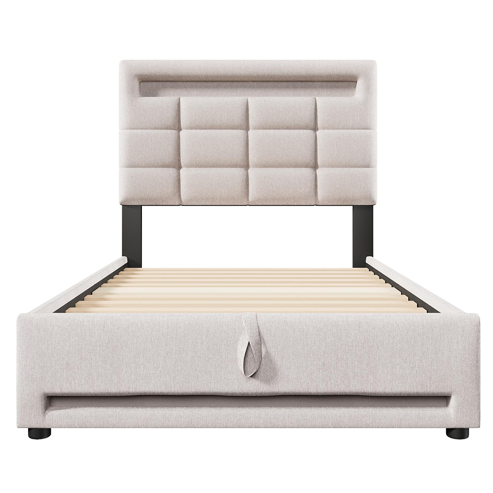 Tyylikäs ja käytännöllinen KOMHTOM-sänky tuo kotiisi mukavuutta ja järjestystä. Luonnonmukainen pellavakangas ja monipuoliset ominaisuudet tekevät tästä sängystä arjen luotettavan kalusteen. Tuote yhdistää viihtyvyyden, säästää tilaa ja helpottaa sähköisten laitteiden lataamista yöpöydän tarpeetta.