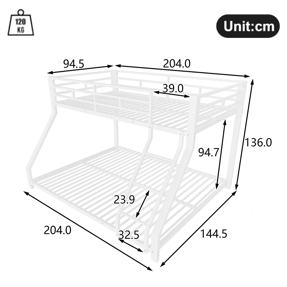 Sängyn ulkomitat: 204 x 144,5 x 136 cm