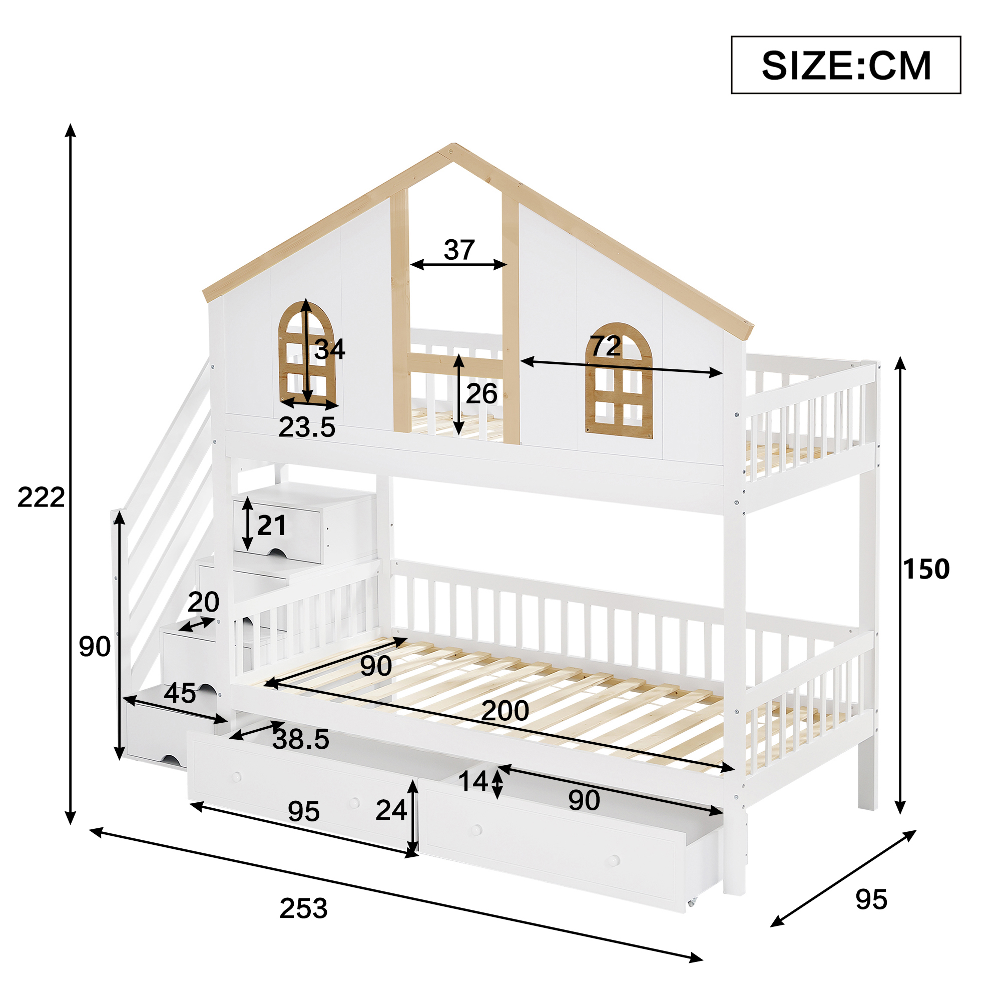 Kerrossänky suunniteltu arjen tarpeisiin: yläpeti on kokonaan aidattu, mikä tuo turvallisen olon lapsen nukkuessa. Tiheästi sijoitetut puiset säleet takaavat tasaisen painon jakautumisen sekä tukevan alustan patjalle, mikä lisää nukkumismukavuutta ja sängyn kestävyyttä. Molemmat kerrokset palvelevat hyvin sekä nukkumisessa että lepäämisessä.
