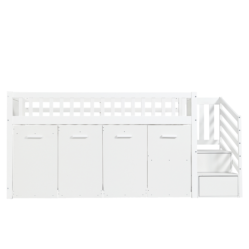 Runsaasti säilytystilaa: Sängyn alla on kaksi vaatekaappia ja yksi säilytyskaappi, jotka tarjoavat joustavaa säilytystilaa vaatteille, kirjoille, leluille tai muille henkilökohtaisille tavaroille.