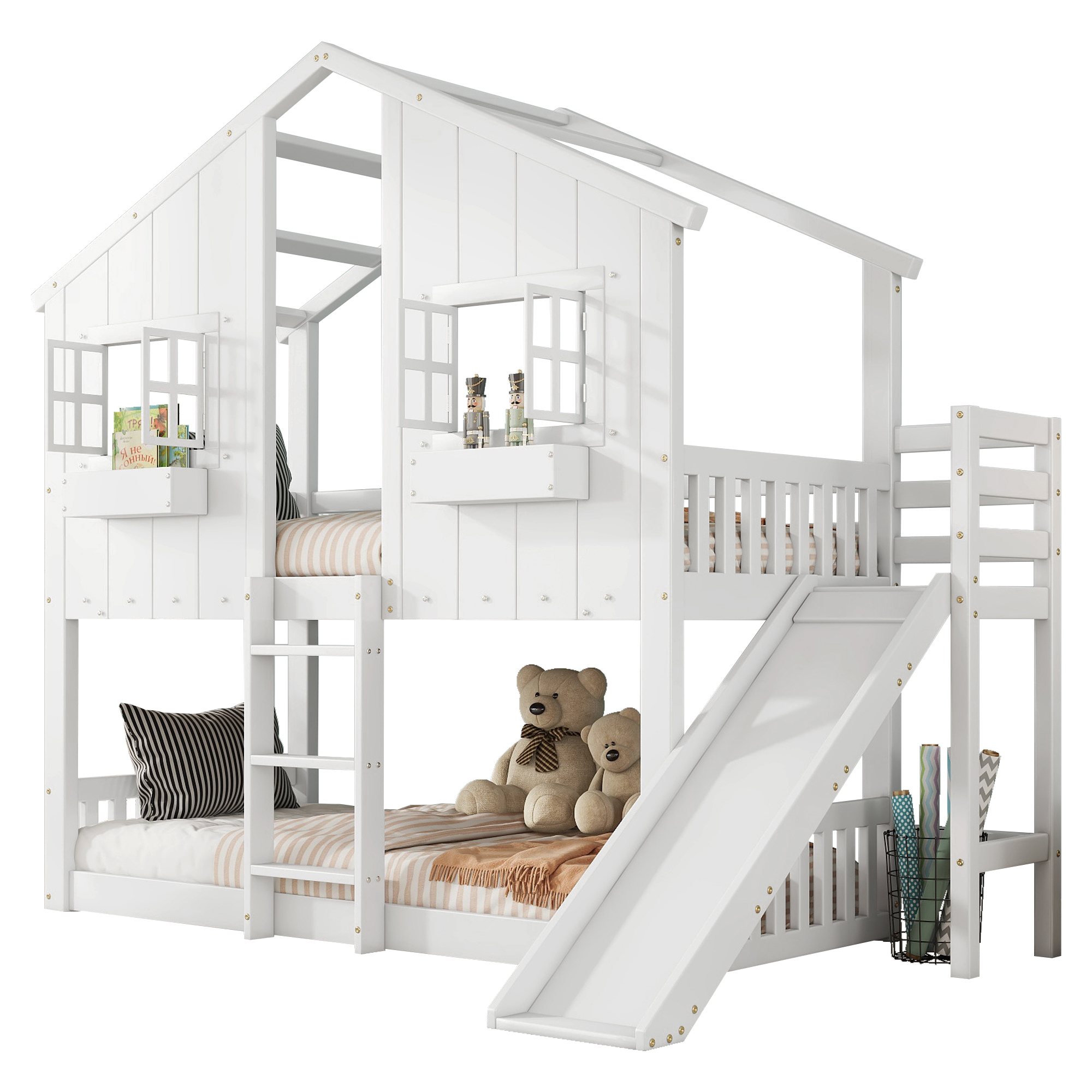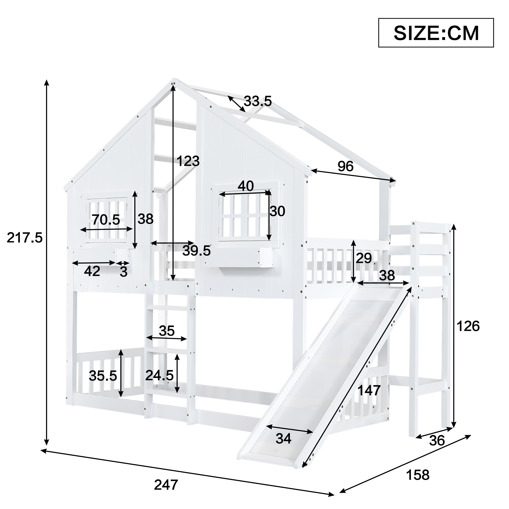 KOMHTOM parvisänky tarjoaa käytännöllisen ja turvallisen nukkumisratkaisun lastenhuoneeseen hauskoilla yksityiskohdilla. Suuret koristellut ikkunat ja liukumäki tuovat leikkisää ilmettä ja lisäävät lapsen arkeen iloa ja seikkailua. Sänky on valmistettu kestävistä materiaaleista, ja se on helppo sovittaa erilaisiin sisustuksiin valkoisen värinsä ansiosta.