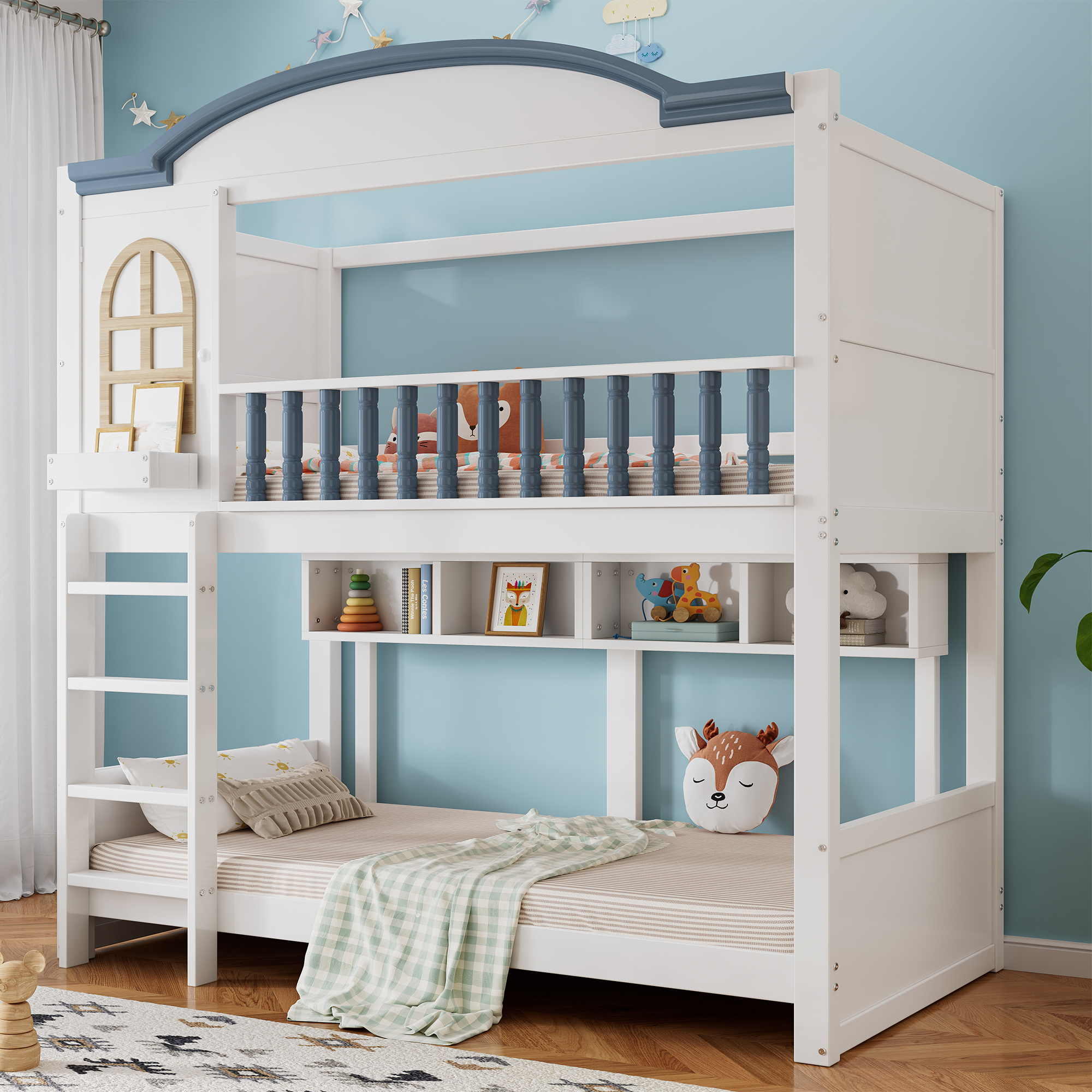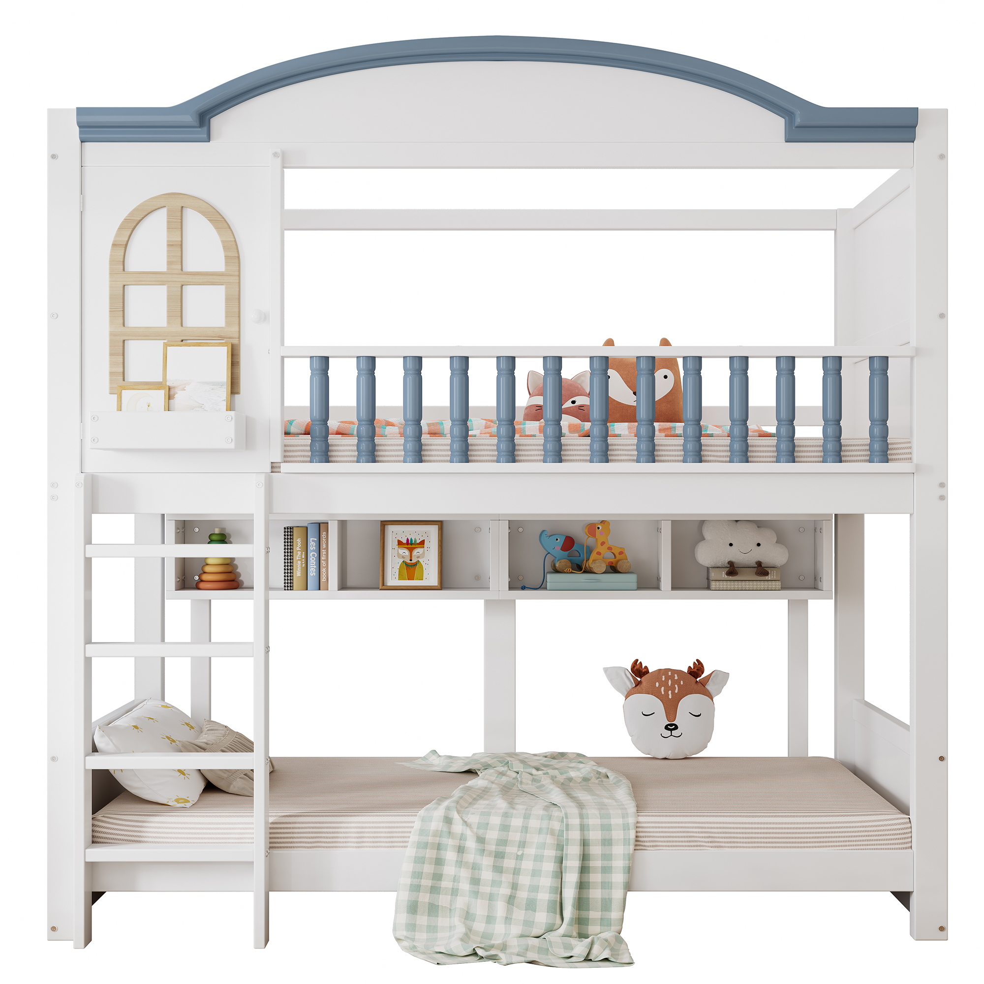 Kerrossängyn alla olevat avohyllyt tuovat käytännöllisyyttä lastenhuoneen arkeen. Hyllyille mahtuvat niin kirjat, lelut kuin muutkin pienet tavarat, joten ne pysyvät järjestyksessä ja helposti saatavilla. Tämä sänky säästää tilaa, kun säilytysratkaisu on suoraan sängyssä, eikä erillisiä hyllyjä aina tarvita.