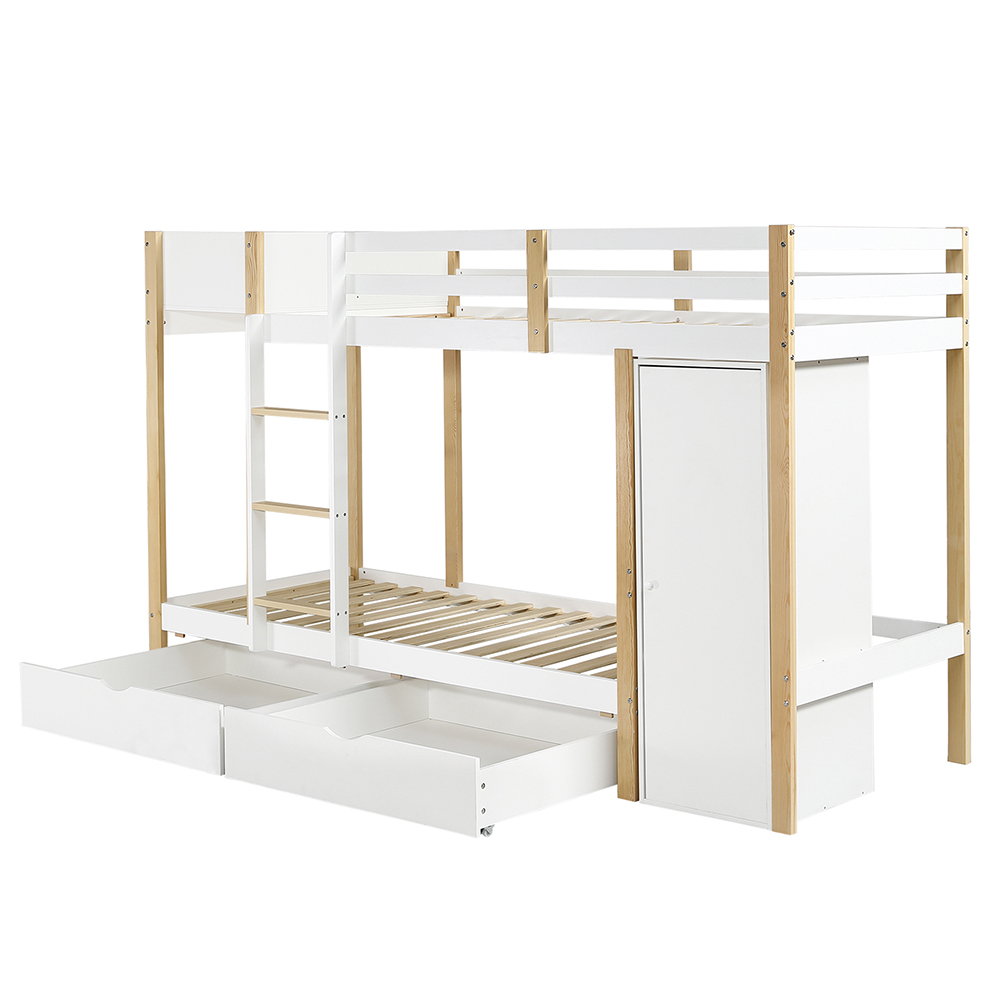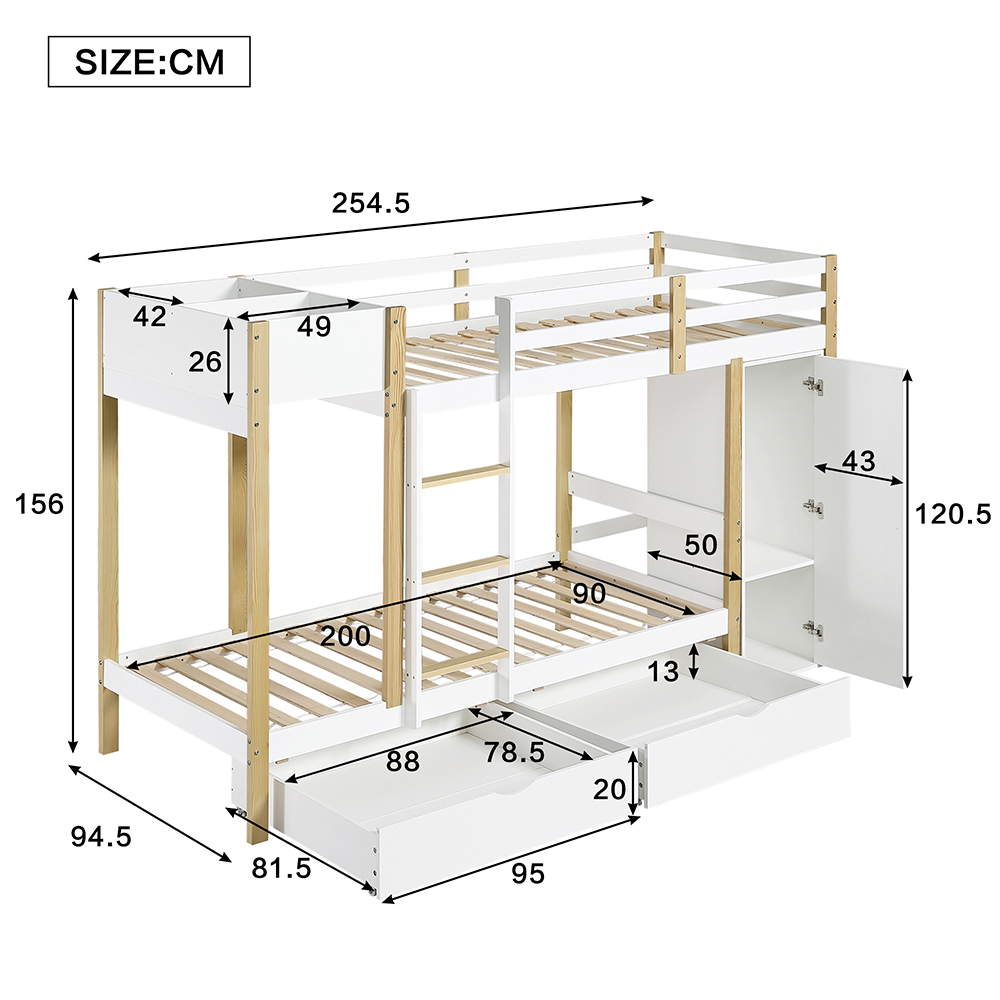 KOMHTOM kerrossänky on suunniteltu vastaamaan arjen tarpeisiin ja tuomaan selkeyttä lastenhuoneeseen. Sängyn yläpuolella oleva vaakasuora säilytystila sekä alapuolella oleva pystysuora kaappi tarjoavat joustavasti tilaa vaatteille, kirjoille ja leluille. Sängyn alla on myös kaksi vetolaatikkoa, jotka auttavat pitämään huoneen järjestyksessä.