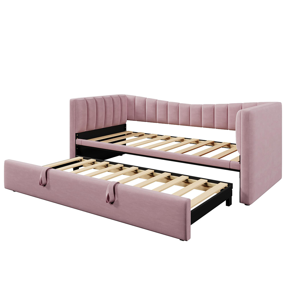 KOMHTOM vuodesohva on käytännöllinen ratkaisu kodin erilaisiin tarpeisiin. Samettinen pintamateriaali tuntuu miellyttävältä ja antaa tilalle lämpimän tunnelman. MDF-levyä käyttämällä rungosta on saatu vakaa ja kestävä, joten sänky kestää käyttöä pitkään. Vaaleanpunainen sävy tuo eloisuutta sisustukseen ilman ylikorostusta.