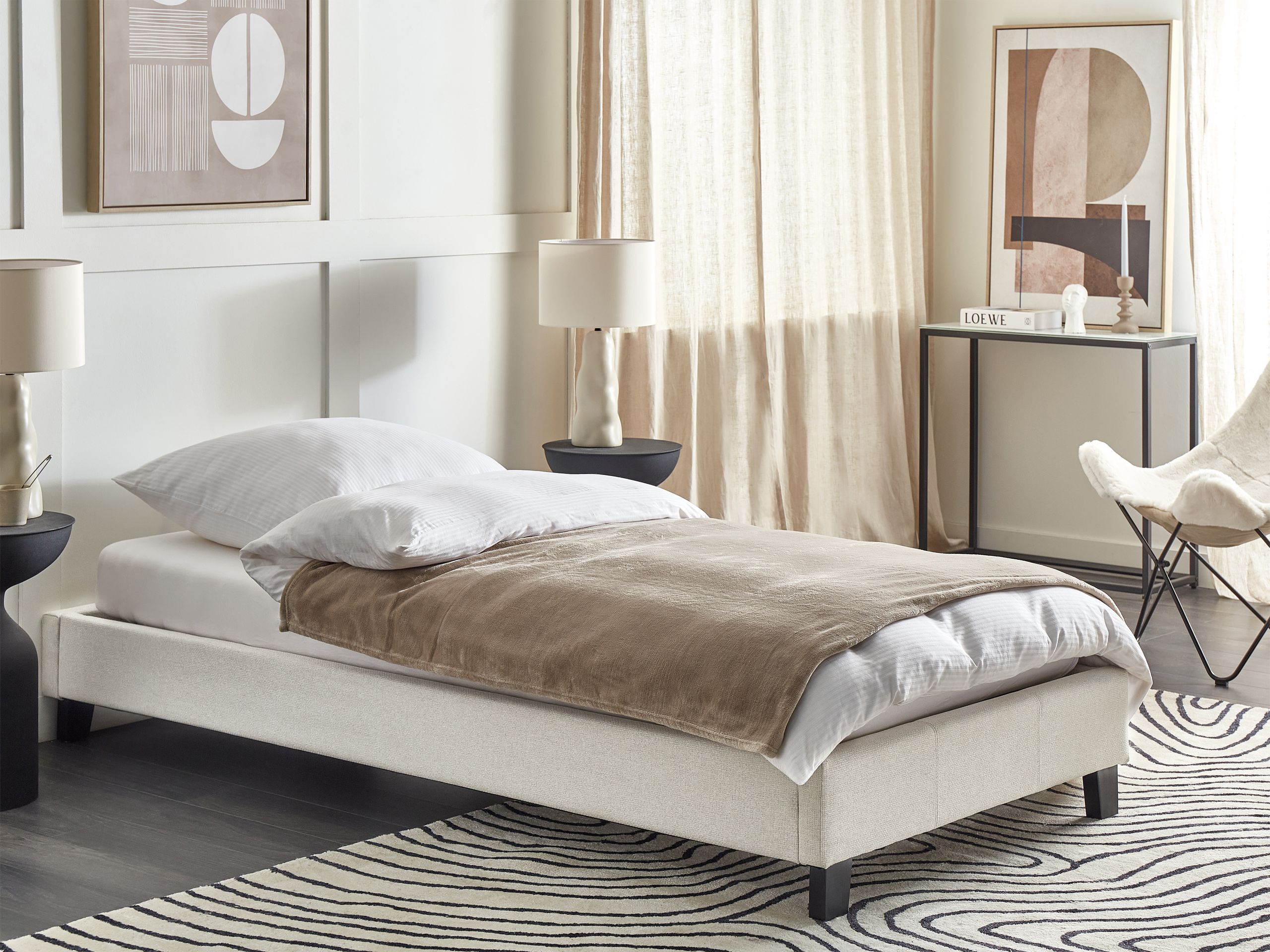 Sänky ilman sängynpäätyä kangas ROANNE 90 x 200 cm Vaaleanbeige