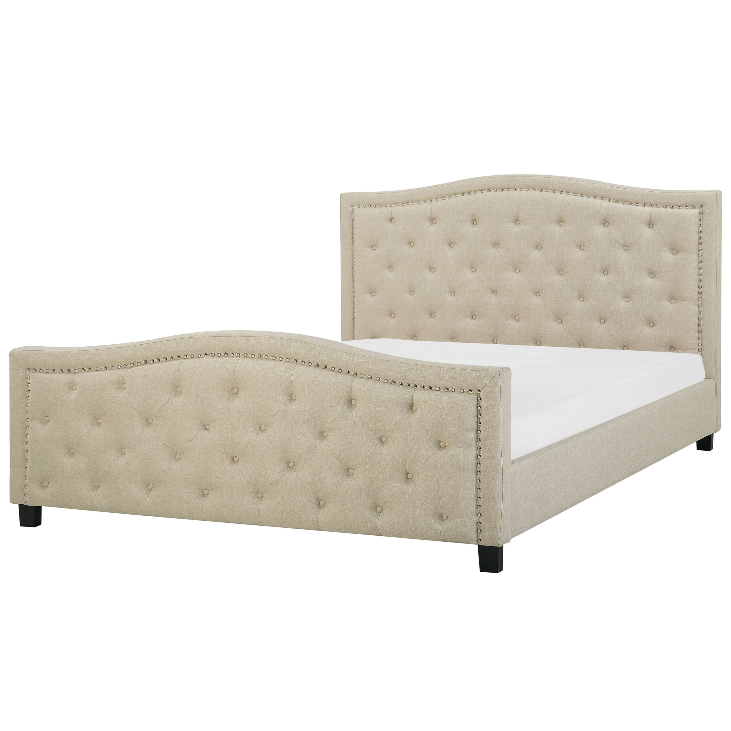Tyylikäs parivuode nappikoristelulla. Tämä sängynrunko on saanut inspiraationsa vintage-tyylin muodoista, ja se on todellinen keskipiste mihin tahansa glamouriin tai perinteiseen makuuhuoneeseen. Sängyn runko on kestävää puuta, joka on verhoiltu helppohoitoisella beigellä kankaalla. Päätyjen verhoilut on koristeltu klassisilla nappituftauksilla, ja koristenaulatuilla reunoilla. Sälepohjan ansiosta kehon paino jakautuu tasaisesti, mikä tarkoittaa hyviä unia.
