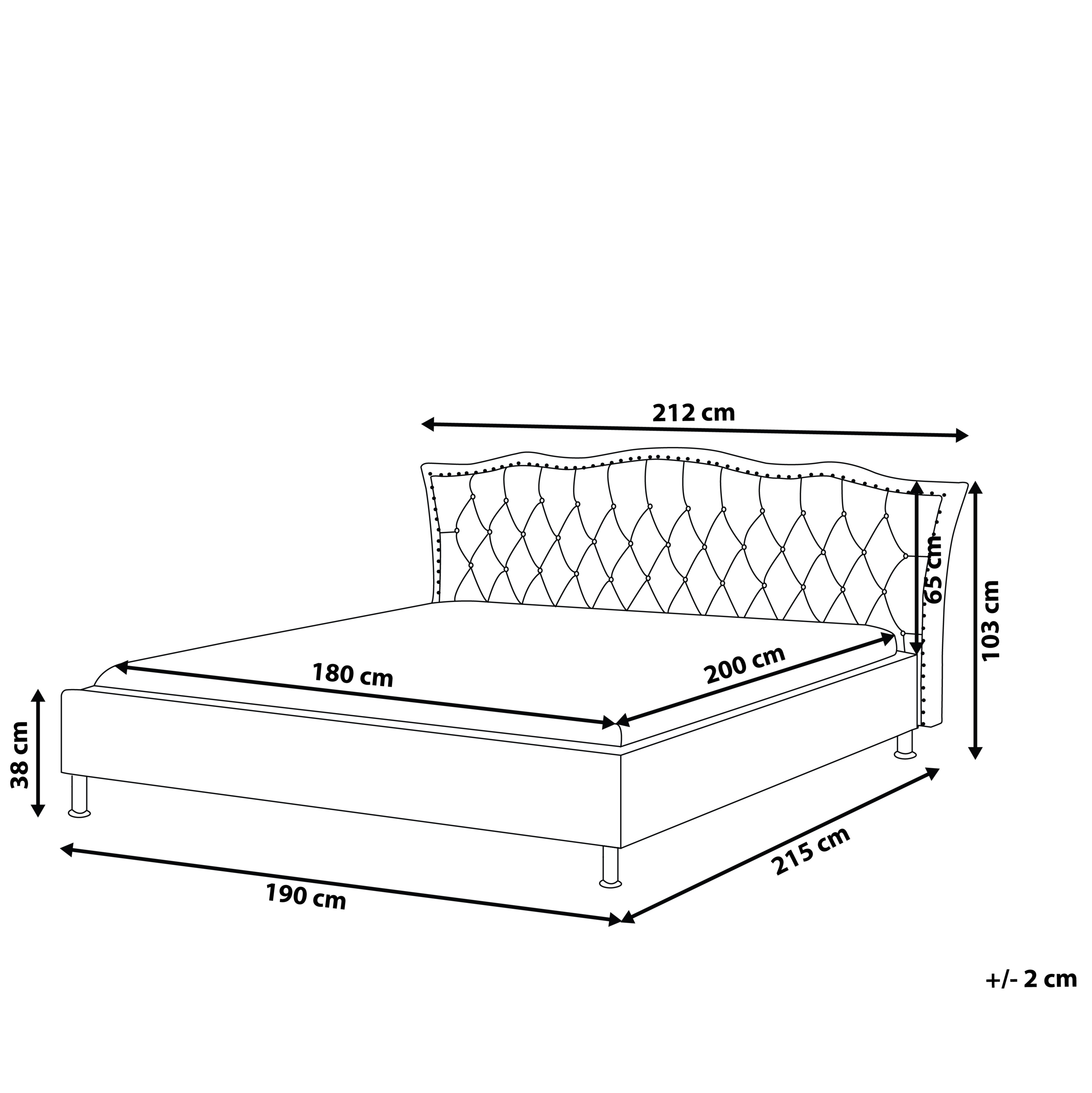 Ylellinen koristeellinen sängynrunko. Piristä makuuhuoneen ilmettä ja tuo siihen ripaus glamouria tällä sängyllä. Sen klassinen mutta ylellinen muotoilu saa jokaisen tilan tuntumaan hienostuneelta keitaalta, jossa rentoutua päivän päätteeksi. Laadukkaalla kankaalla verhoiltu sänky on sekä tyylikäs että kestävä ja erittäin helppo ylläpitää. Tekokristalleilla ja verhoilunauloilla koristeltu sängynpääty tuo sänkyyn säihkyvää viehätystä ja korostaa sen lumoavaa ilmettä. Tukeva runko tarjoaa patjalle tukea ja vakautta, varmistaen mukavan unen.