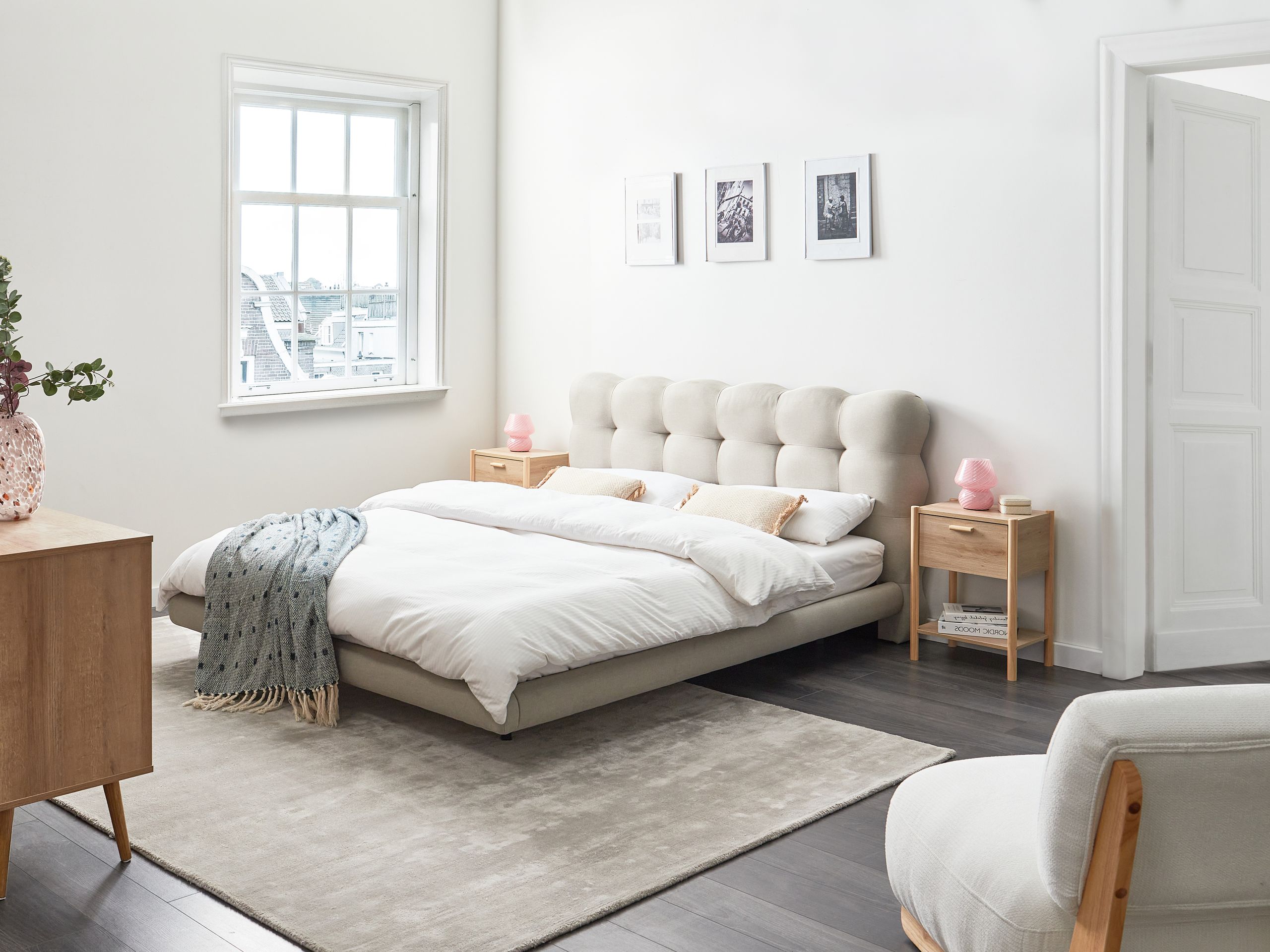 Ominaisuudet: Iskuja vaimentava sälepohja tarjoaa täydellisen tuen, Mukava ja leveä nukkumisalue, Minimalistinen, skandinaavinen tyyli, Sopii useaan eri sisustustyyliin, Laadukas verhoilu, Vankka rungon rakenne
