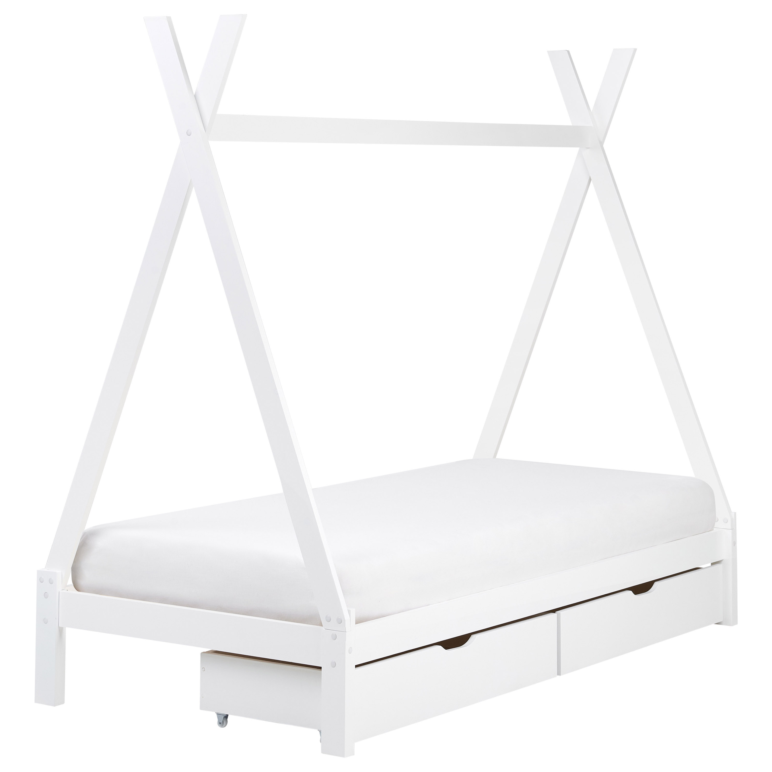 Moderni lasten tiipiisänky kahdella laatikolla. Tämä perheen pienimpiä ajatellen suunniteltu sänky on täydellinen lisä jokaiseen lasten makuuhuoneeseen. Sen poikkeuksellisen matala profiili takaa pikkulapsille helpon pääsyn, ja sen lyhyt etäisyys lattiasta antaa rauhoittavan turvallisuuden tunteen. Sänky on valmistettu vankasta massiivimännystä, minkä ansiosta se tarjoaa sekä kestävyyttä että tukevuutta ja on pitkäikäinen. Mukana tulevat pyörillä varustetut laatikot sopivat erinomaisesti lelujen tai muiden tavaroiden säilytykseen. Tiipiitä muistuttava muotoilu lisää tilaan leikkisyyttä, ja ajaton väri sulautuu vaivattomasti useisiin sisustustyyleihin.