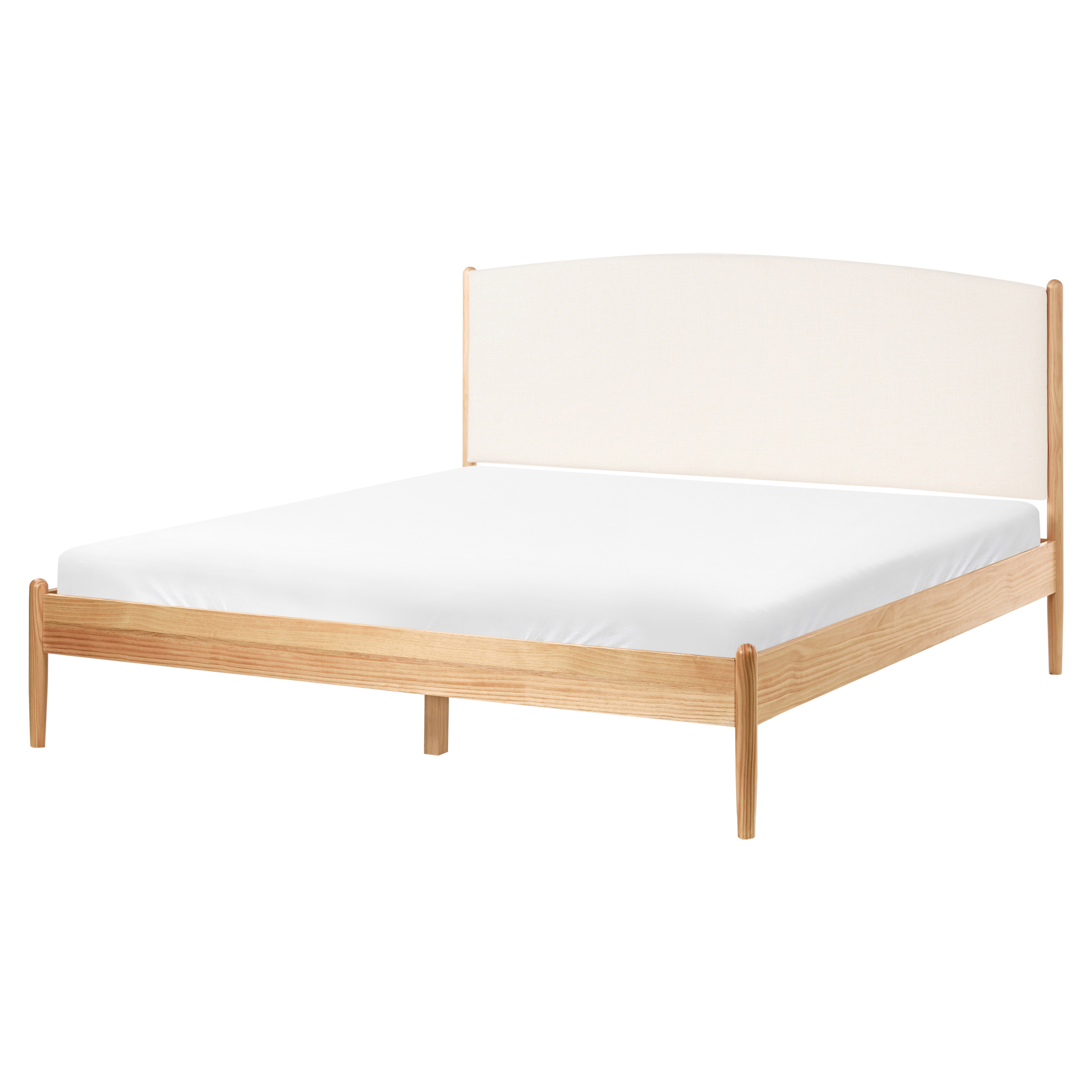 Minimalistinen puinen parisänky kangaspäädyllä. Tämä parisänky tuo jokaiseen makuuhuoneeseen skandinaavista eleganssia ja kodikasta ylellisyyttä. Laadukkaasta vaaleansävyisestä männystä valmistettu runko tarjoaa raikkaan, nykyaikaisen ilmeen. Lempeästi kaareva sängynpääty on verhoiltu vaalealla polyesterikankaalla ja tarjoaa sekä mukavuutta että tyyliä. Vankka puinen sälepohja varmistaa tuen, minkä ansiosta sänky on miellyttävä nukkua.