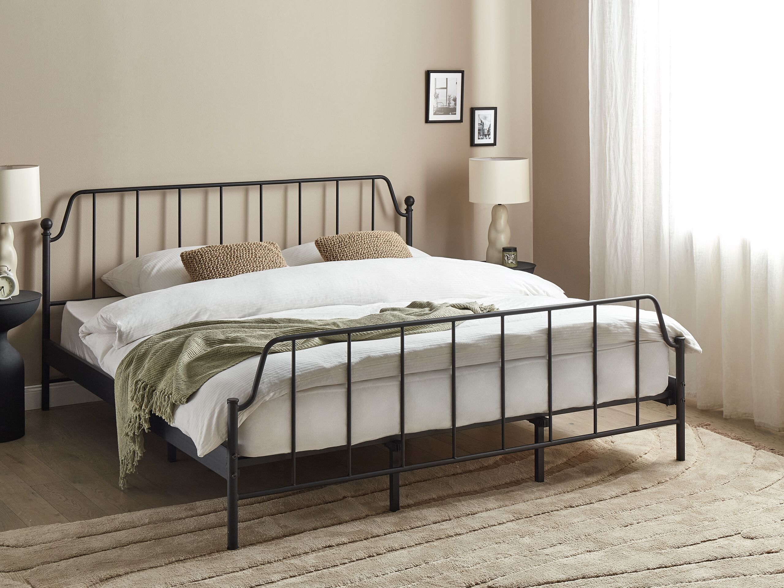 Minimalistinen metallisänky. Tämä metallinen parisänky sopii täydellisesti kaikkiin industriaalisiin, moderneihin tai minimalistisiin makuuhuoneisiin. Raudasta valmistetun rungon ansiosta se on kestävä ja vakaa. Puinen sälepohja huolehtii siitä, että kehon paino jakautuu tasaisesti. Yhdistä vuode puukalusteiden ja neutraalin väristen sisustustarvikkeiden kanssa luodaksesi ihanteellisen sisustuksen.