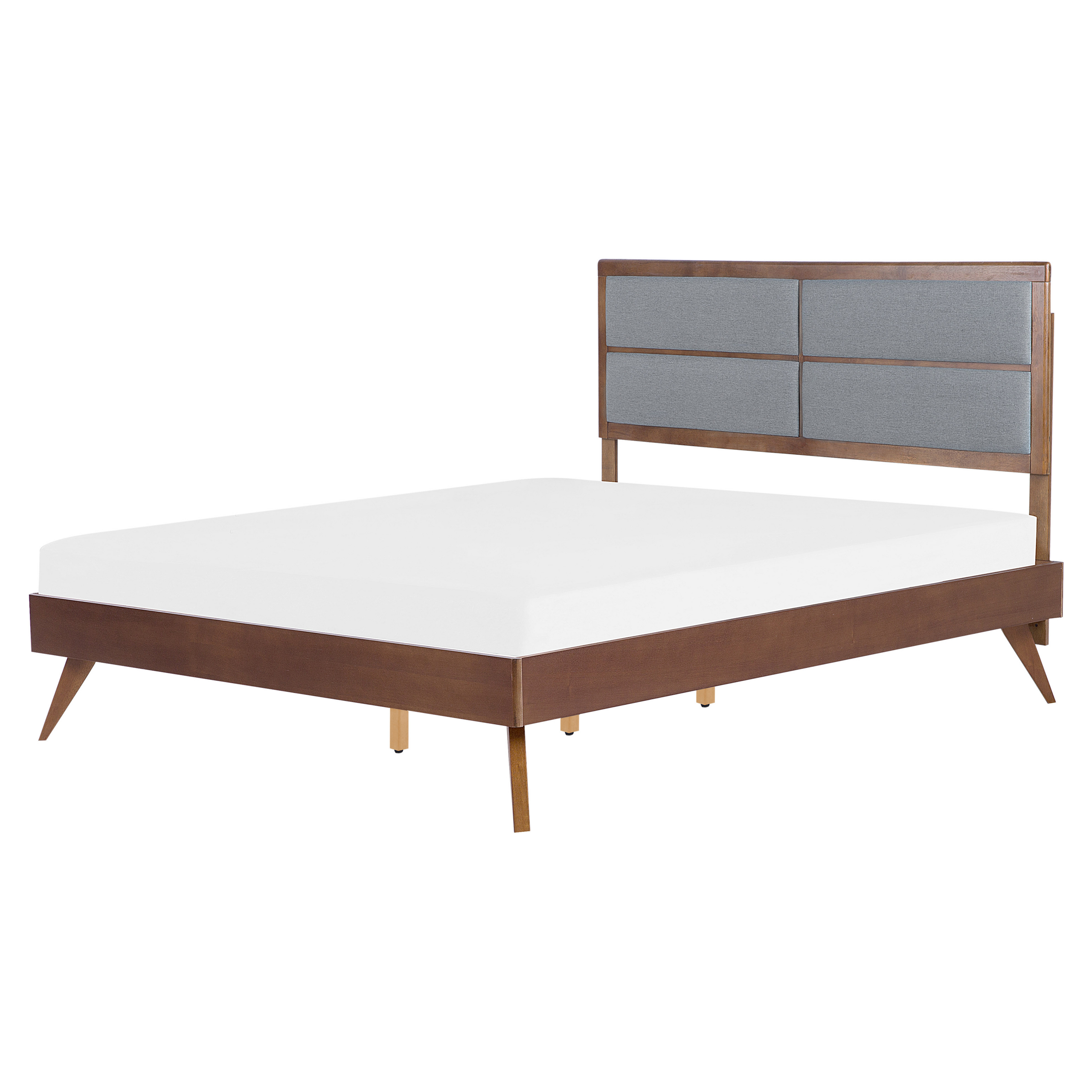 Retrotyylinen parivuode. Tuo modernia ja rustiikkista tyyliä makuuhuoneeseesi tällä parisängyllä. Tukeva runko on valmistettu saarniviilutetusta kumipuusta ja vakaat jalat kumipuusta. Tumma puukuvioitu sängynpääty on valmistettu MDF-levystä ja viimeistelty harmaalla polyesteriverhoilulla. Päädyn neljä pehmustettua kangaskappaletta luovat kauniin kontrastin ja tarjoavat paikan, johon on mukava nojata. Mukana tuleva sälepohja on valmistettu kumipuusta, joka takaa oikeanlaisen patjan tuen sekä tasaisen painon jakautumisen, jonka ansiosta nukut mukavasti.