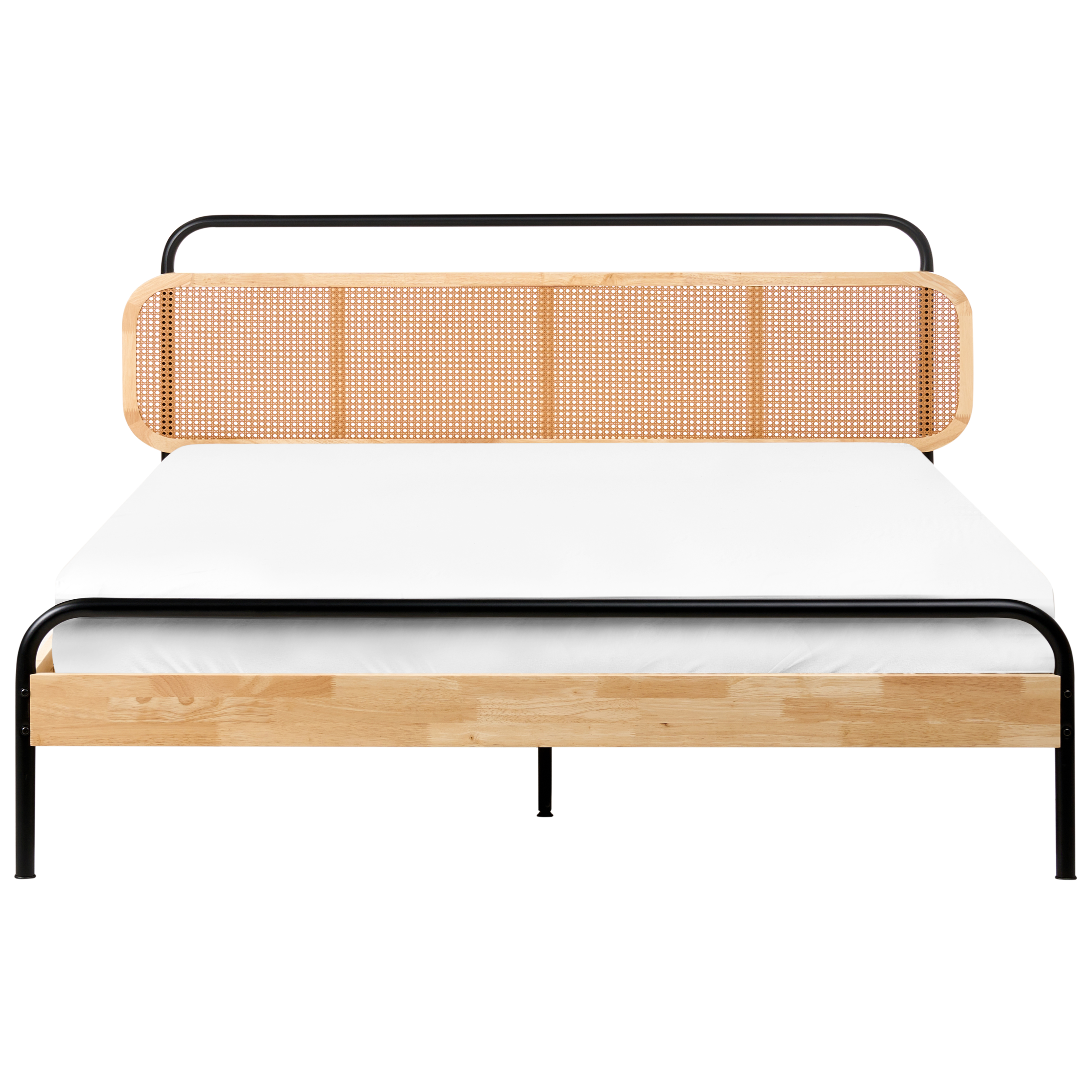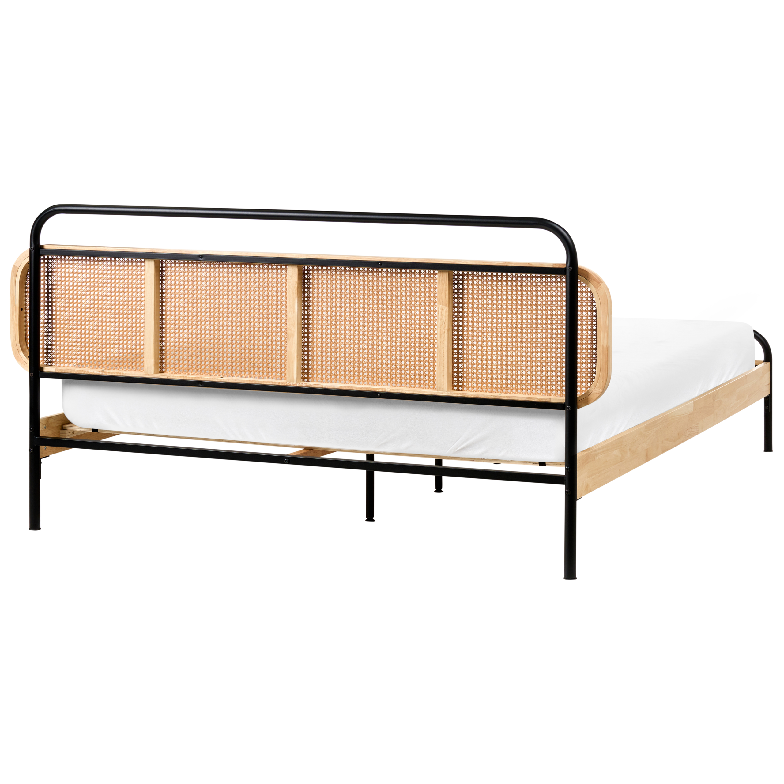 Retrotyylinen puusänky wieniläispunotulla päädyllä. Nauti levollisista yöunista ja herää virkeänä tässä parisängyssä, jonka sängynpääty on koristeltu hurmaavalla wieniläispunoksella. Tyyliä ja mukavuutta harmonisesti yhdistävä sänky takaa rauhalliset ja tyylikkäät unet. Runko on valmistettu tukevasta ja kestävästä kumipuusta, ja sitä täydentävät vankat mustat teräsjalat, jotka korostavat sängyn ajatonta muotoilua. Mukana tuleva sälepohja varmistaa parhaan mahdollisen tuen patjalle. Materiaaliensa ansiosta sänky on pitkäikäinen, ja se sulautuu vaivattomasti monenlaisiin sisustuksiin.