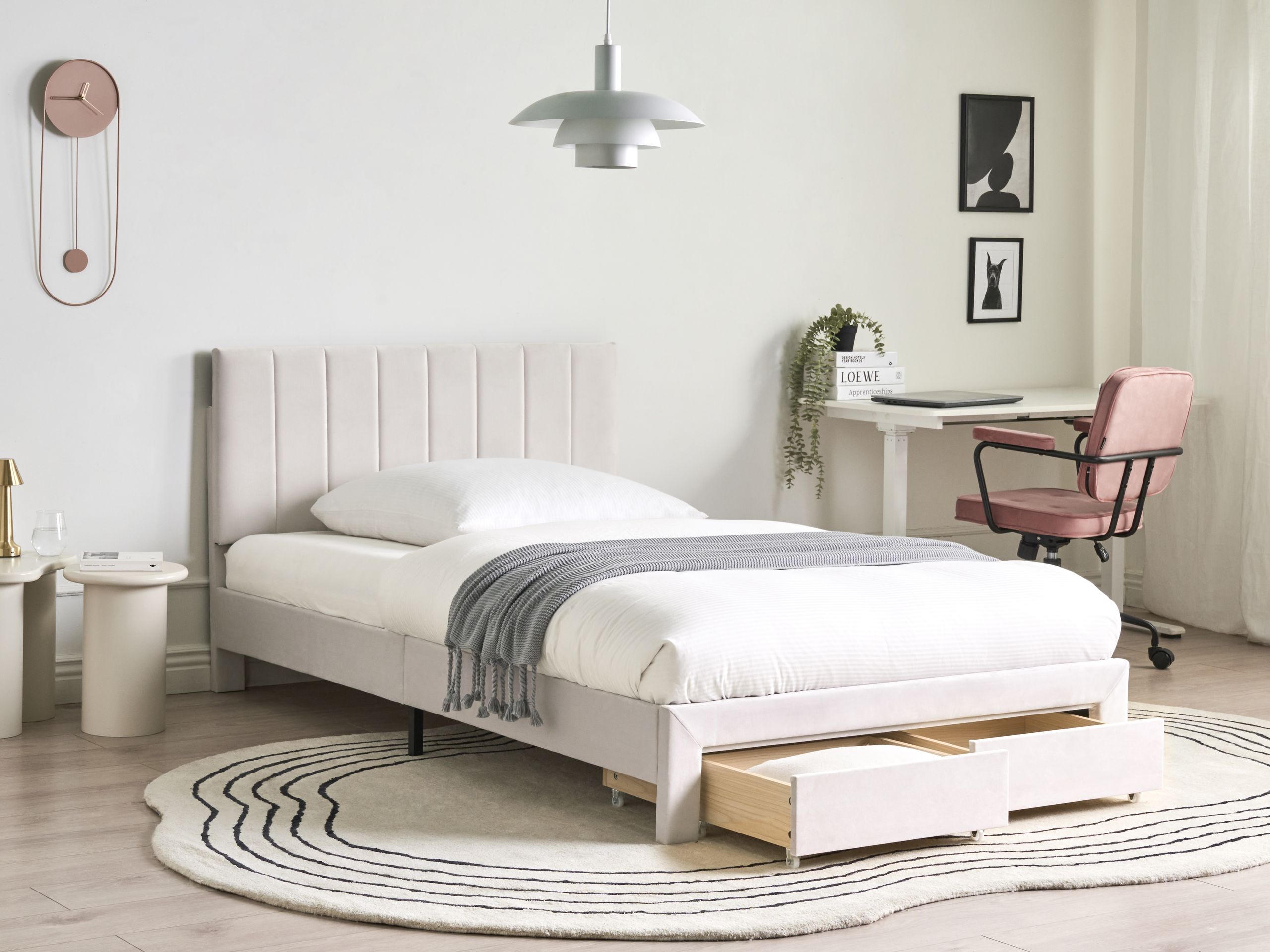 Sänky säilytyslaatikoilla sametti LONZAC 120 x 200 cm Luonnonvalkoinen