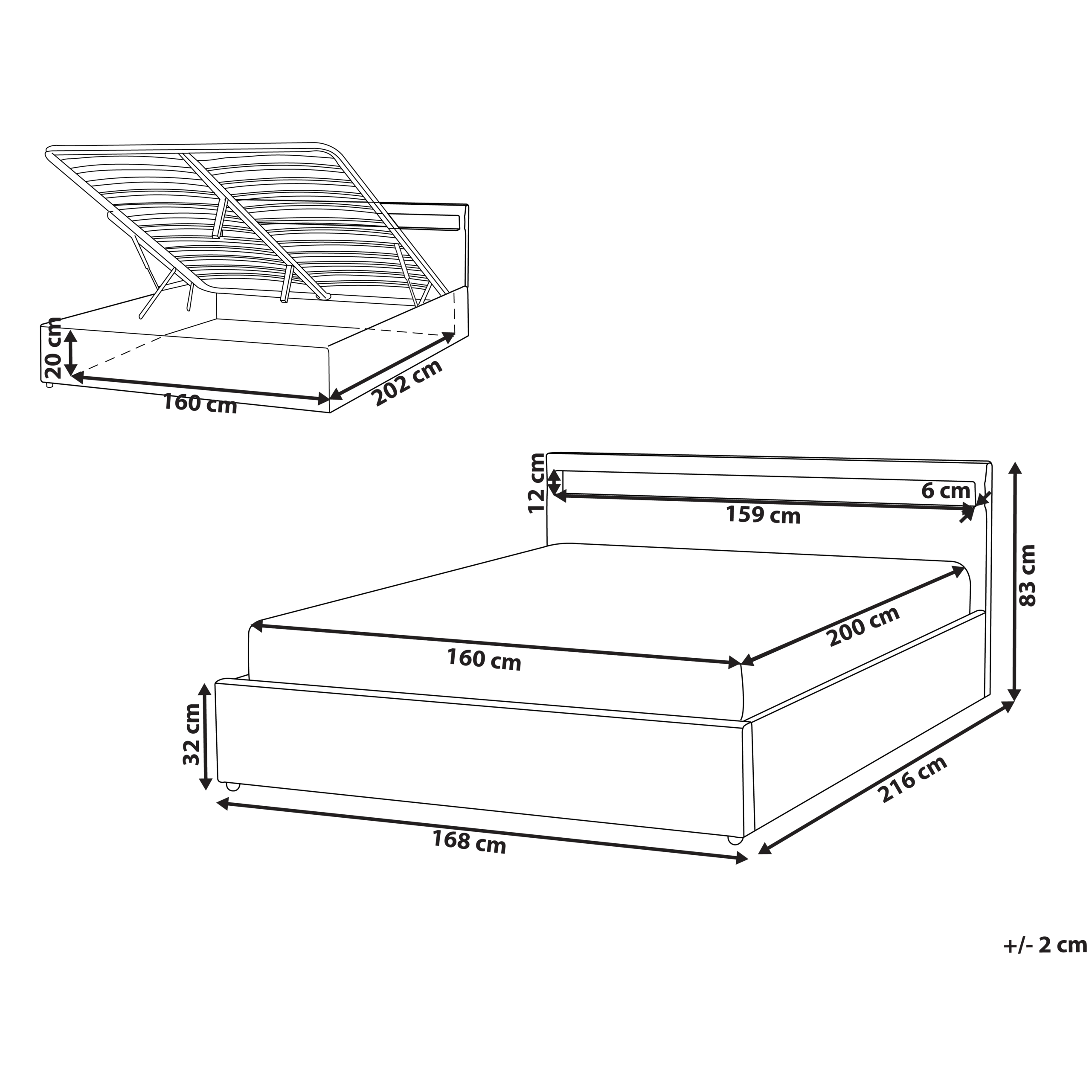 Säilytystilan mitat: 160x202x20