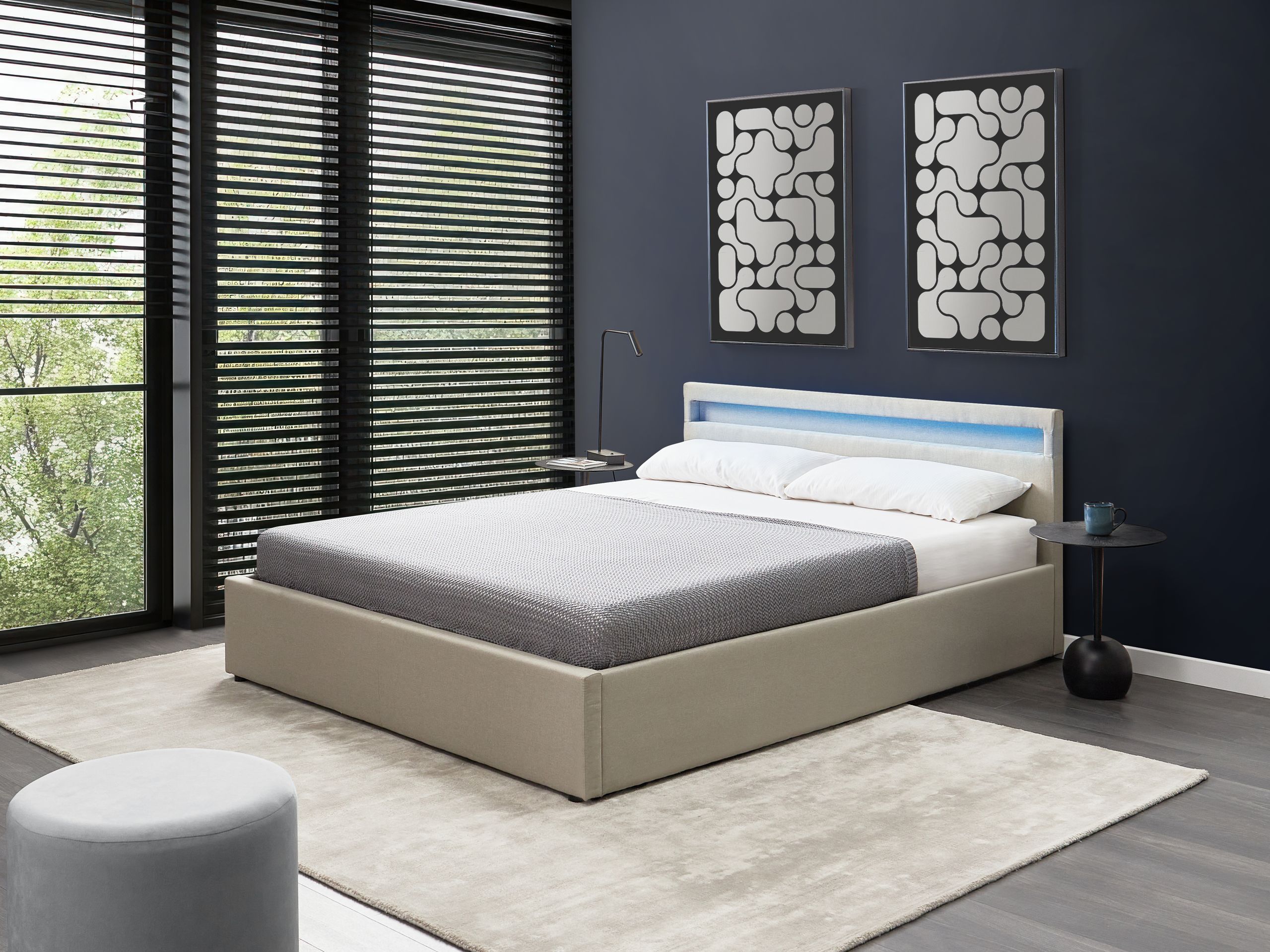 Sänky säilytystilalla ja LED-valolla kangas ARMELLE 160 x 200 cm Beige