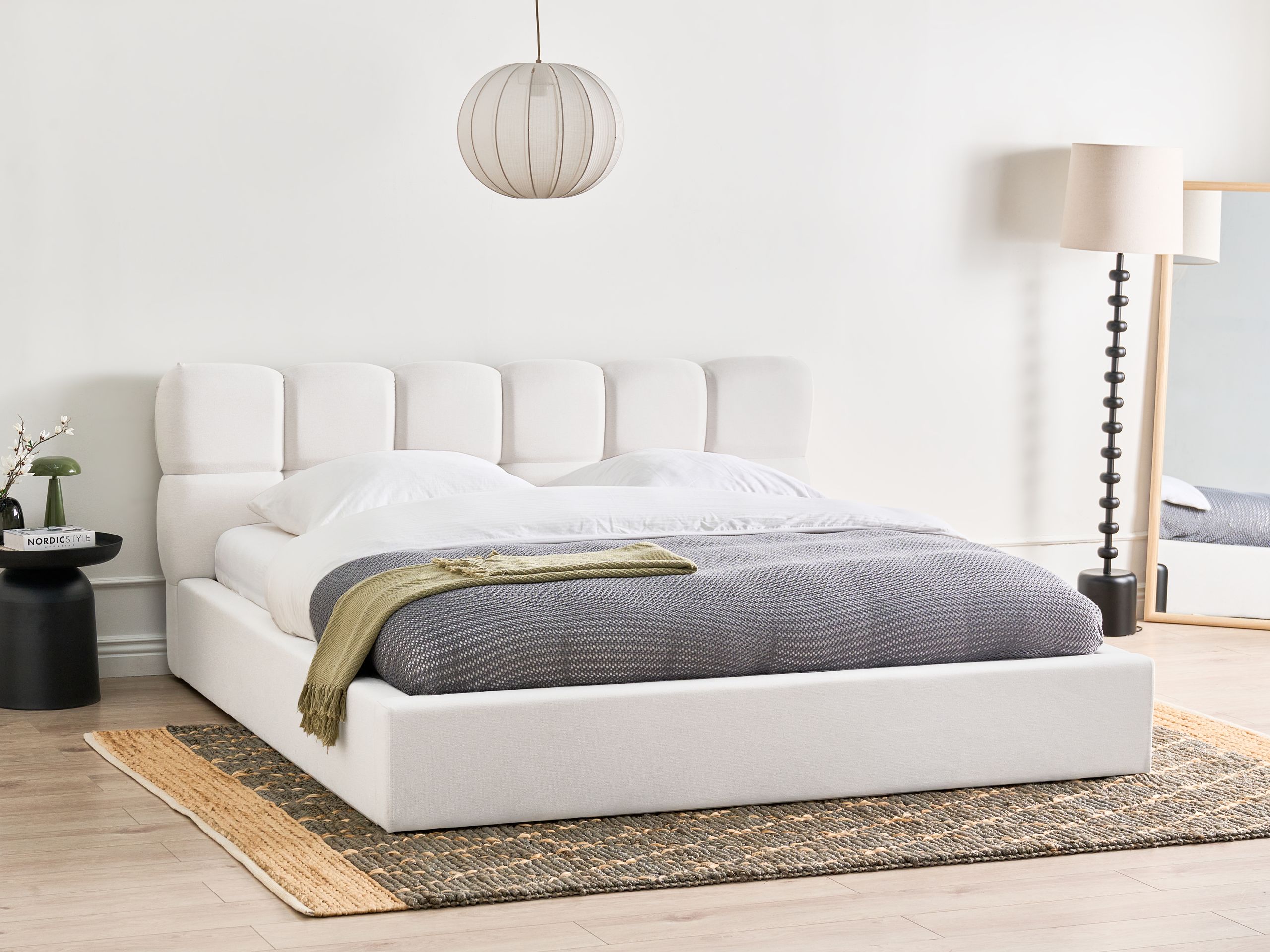 Sänky säilytystilalla kangas BASTON 180 x 200 cm Luonnonvalkoinen