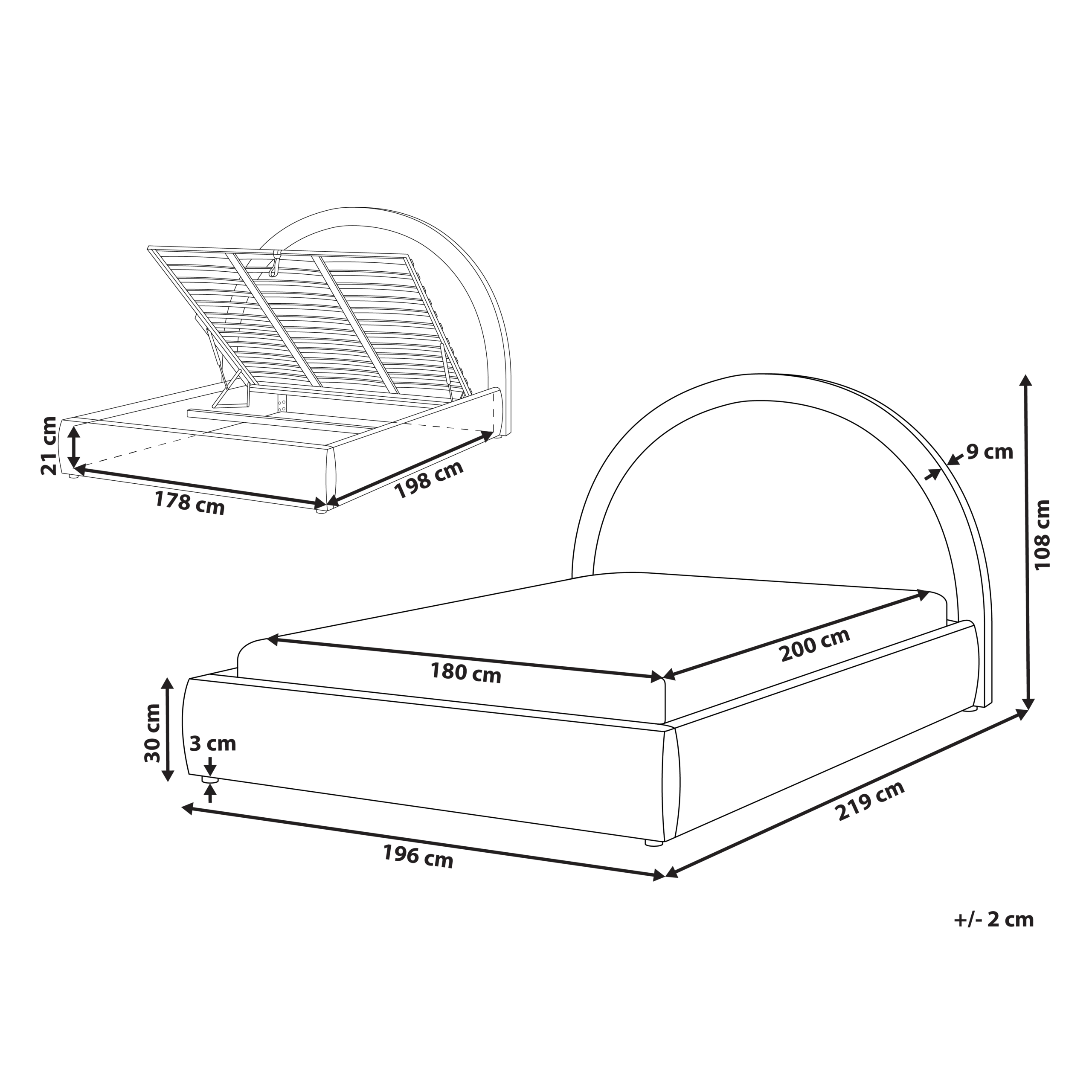 Lisätiedot: Kuvassa näkyvän patjan korkeus on 20 cm, suosittelemme samankokoisen patjan käyttöä.