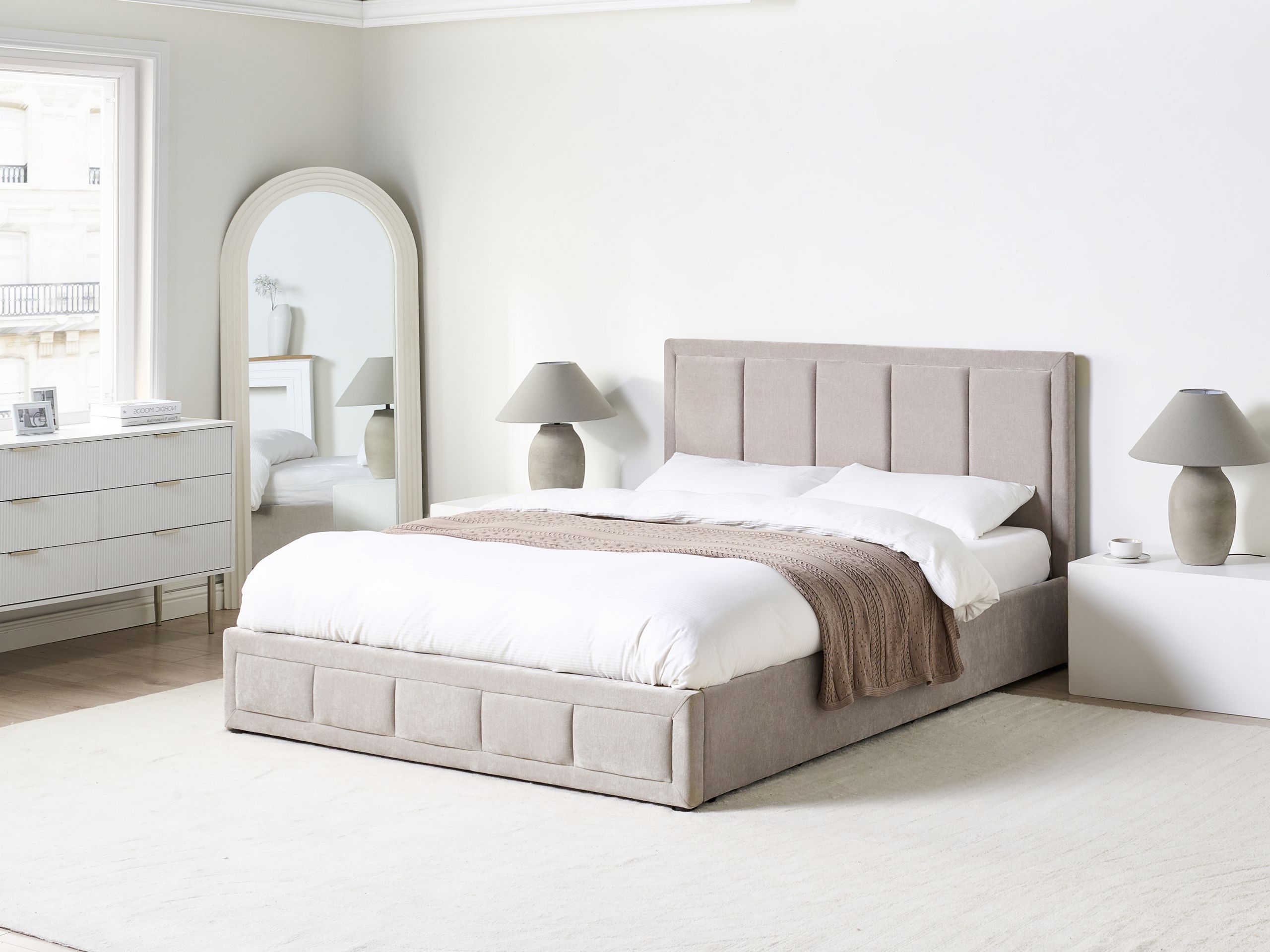 Säilytystilallinen sängynrunko päädyllä. Tämä minimalistinen parisänky yhdistää tyylin ja käytännöllisyyden kestävään, helppohoitoiseen kangasverhoiluun. Sälepohja tarjoaa erinomaisen tuen koko vartalolle, ja sen alla oleva säilytystila on kätevä paikka vuodevaatteiden ja muiden tavaroiden säilyttämiseen. Tikattu pääty lisää mukavuutta, ja neutraali sävy tekee sängystä monipuolisen valinnan mihin tahansa makuuhuoneen sisustukseen.