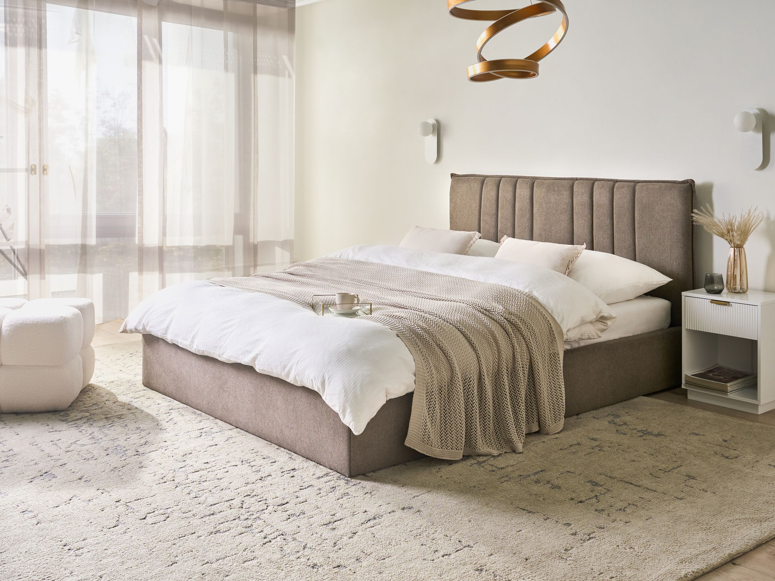 Ominaisuudet: Iskuja vaimentava sälepohja tarjoaa täydellisen tuen, Integroitu runko takaa vakauden, Minimalistinen, skandinaavinen tyyli, Sopii mihin tahansa sisustukseen, Laadukas verhoilu, Pneumaattinen nosto varmistaa helpon pääsyn säilytystilaan
