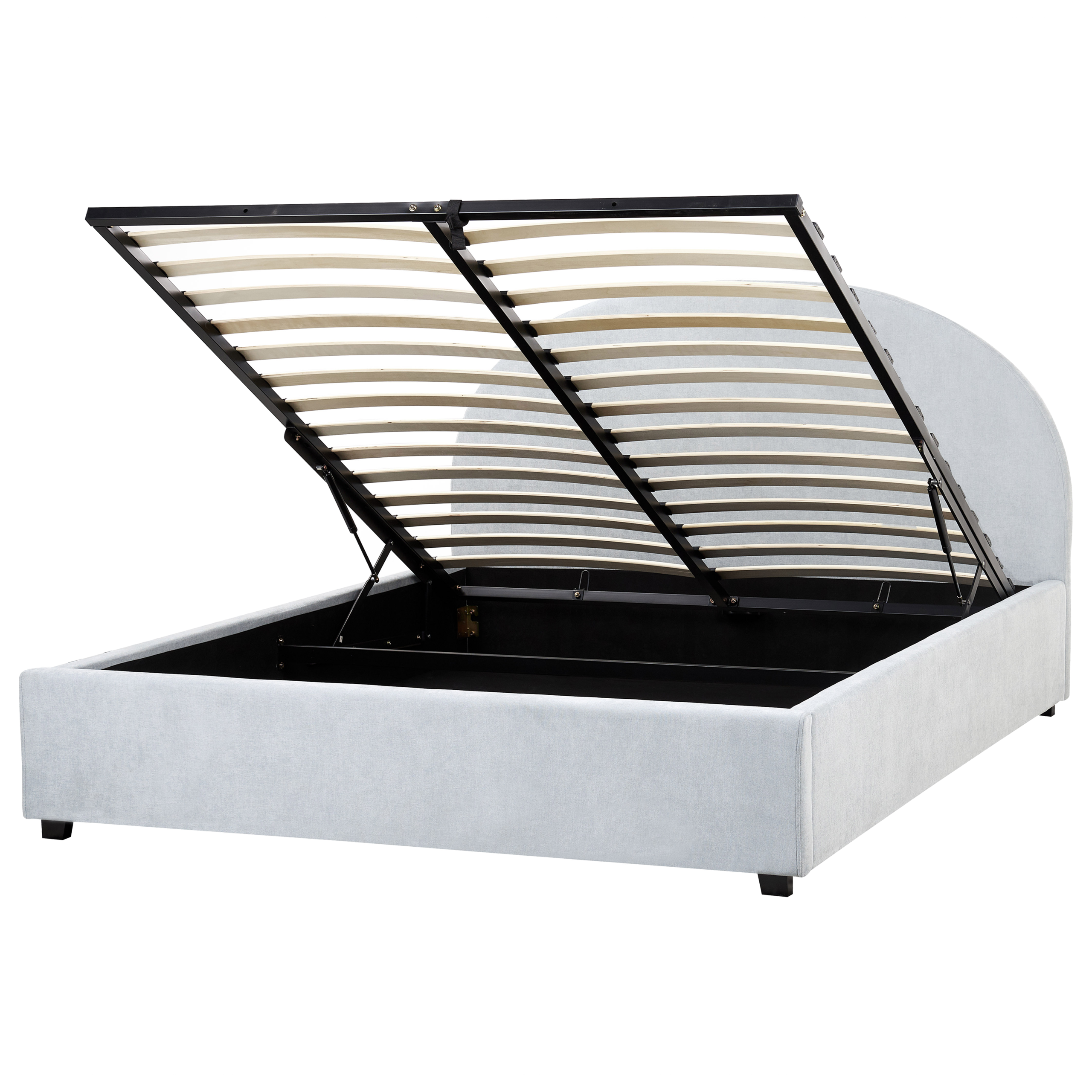 Minimalistinen parisänky kaarevalla sängynpäädyllä. Kaarevien muotojensa ja täyteläisten tekstuuriensa ansiosta tämä parisänky tuo ripauksen retrotyyliä mihin tahansa makuuhuoneeseen. Vaaleansininen polyesteriverhoilu on miellyttävän tuntuinen, kestävä ja helppohoitoinen. Sänky on loistava valinta lemmikinomistajille, sillä verhoilu on helppo puhdistaa lemmikin karvoista. Kaareva sängynpääty luo makuuhuoneeseen kotoisan ja kutsuvan tunnelman. Sälepohjan alle kätkeytyvä säilytystila tarjoaa paljon tilaa vuodevaatteille, vaatteille tai tyynyille. Vankka sälepohja varmistaa oikeanlaisen tuen, jakaen vartalon painon tasaisesti.