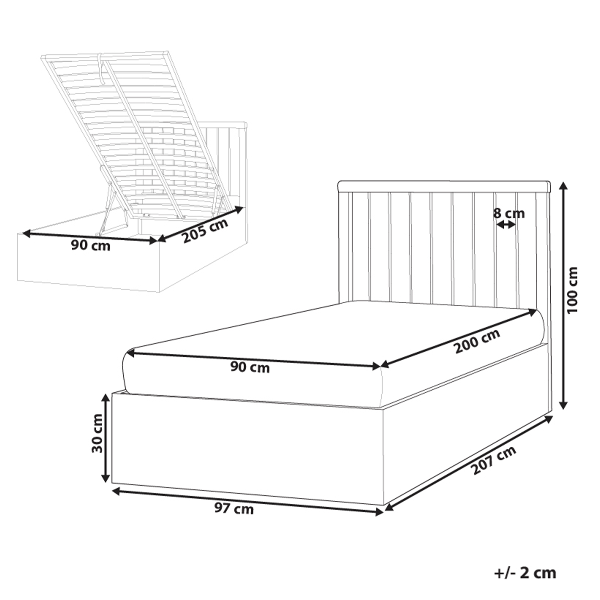 Moderni säilytystilallinen sänky. Sisusta makuuhuoneesi tällä skandinaavisella, minimalistisella sängyllä. Sänky on valmistettu MDF-levystä, joka takaa kestävyyden, helppohoitoisuuden ja tyylikkyyden. Lisäksi sängyssä on nostettava säilytystila, jossa voi säilyttää vuodevaatteita ja muita harvoin käytettäviä, suuria esineitä.