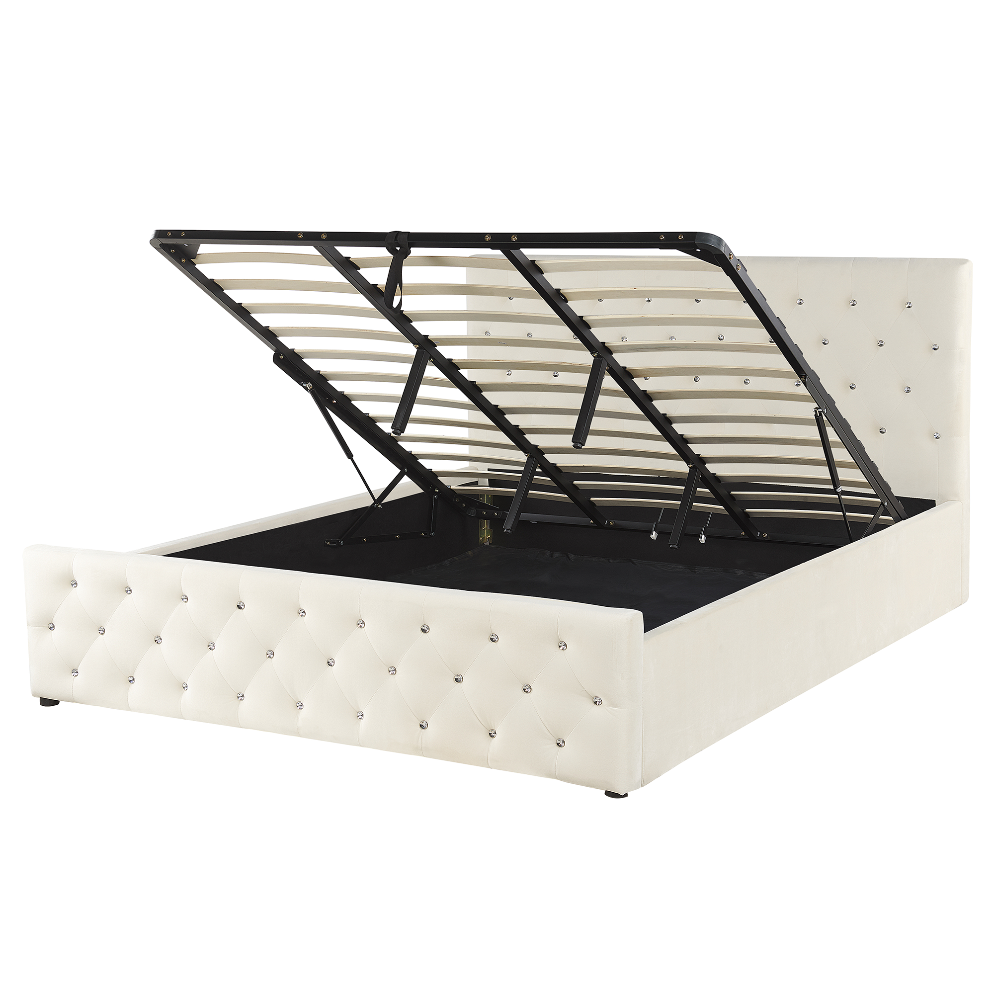 Ylellinen parisänky säilytystilalla. Tämä mukavuutta sekä tyylikästä ja hienostunutta ilmettä tarjoava parisänky on täydellinen valinta hyviä yöunia kaipaaville. Sen metallirunko on verhoiltu pehmeällä, hillityn sävyisellä samettikankaalla. Jalka- ja sängynpäädyssä olevat timanttitikkaukset, hienovaraiset tuftaukset ja kauniisti hohtavat tekokristallit tuovat sänkyyn ripauksen glamouria. Tukevan sälepohjan alle kätkeytyvään säilytystilaan mahtuvat vaivattomasti lakanat ja muut ylimääräiset vuodevaatteet.