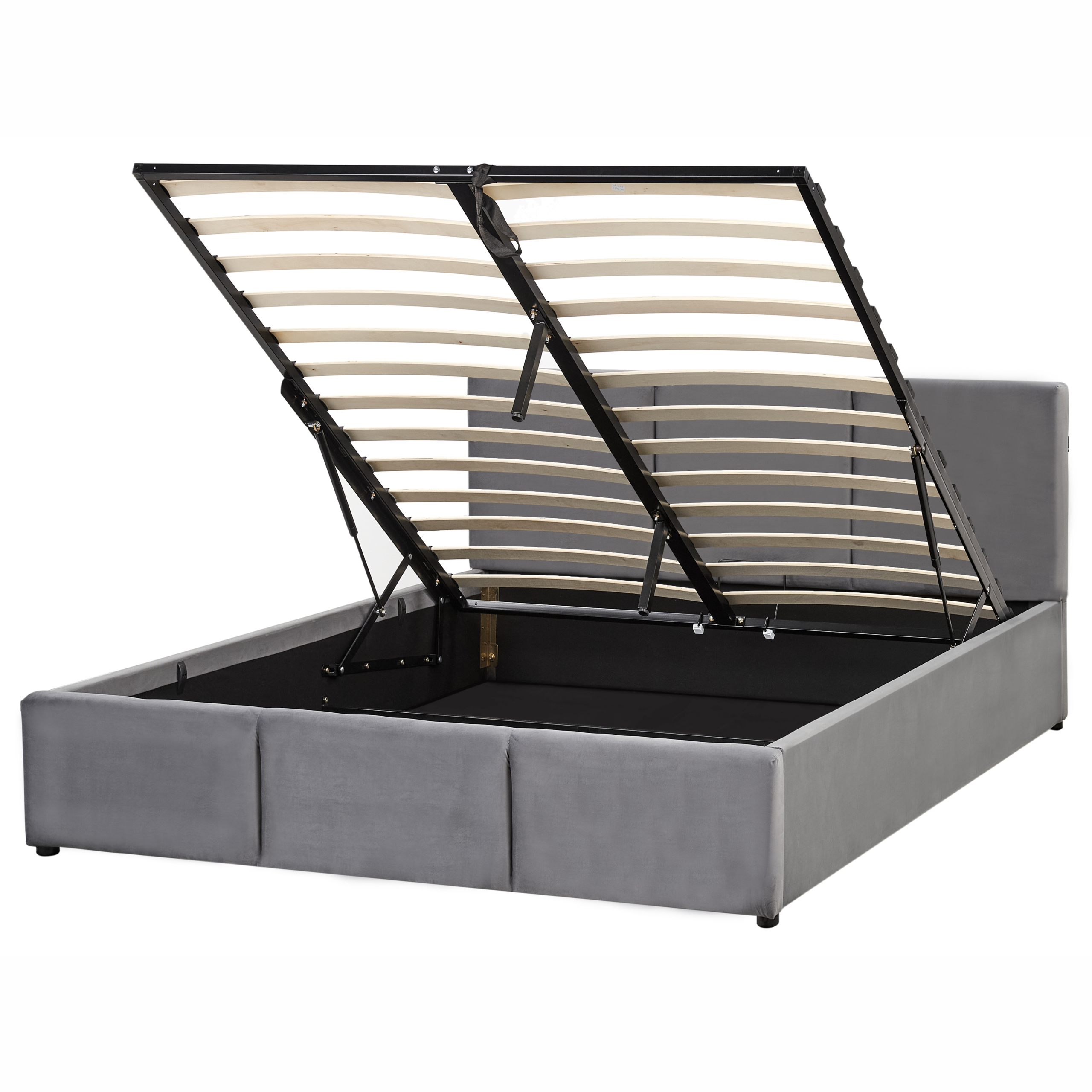 Verhoiltu säilytyssänky elegantilla päädyllä. Lisää makuuhuoneeseesi ripaus ylellisyyttä ja mukavuutta tällä parisängyllä. Sen yksinkertainen runko on verhoiltu pehmeän tuntuisella samettikankaalla, jota koristavat sängynpäädyn ja jalkopään tyylikkäät pystysuuntaiset urat. Sälepohjan alla oleva säilytystila avautuu vaivattomasti kaasunostojousien avulla. Se tarjoaa runsaasti tilaa vaatteille, peitoille, tyynyille tai muille tekstiileille ja tavaroille, jotka haluat pitää piilossa. Viimeistele sänky sopivalla patjalla ja nauti täydellisestä rentoutumisesta sekä mukavista yöunista.