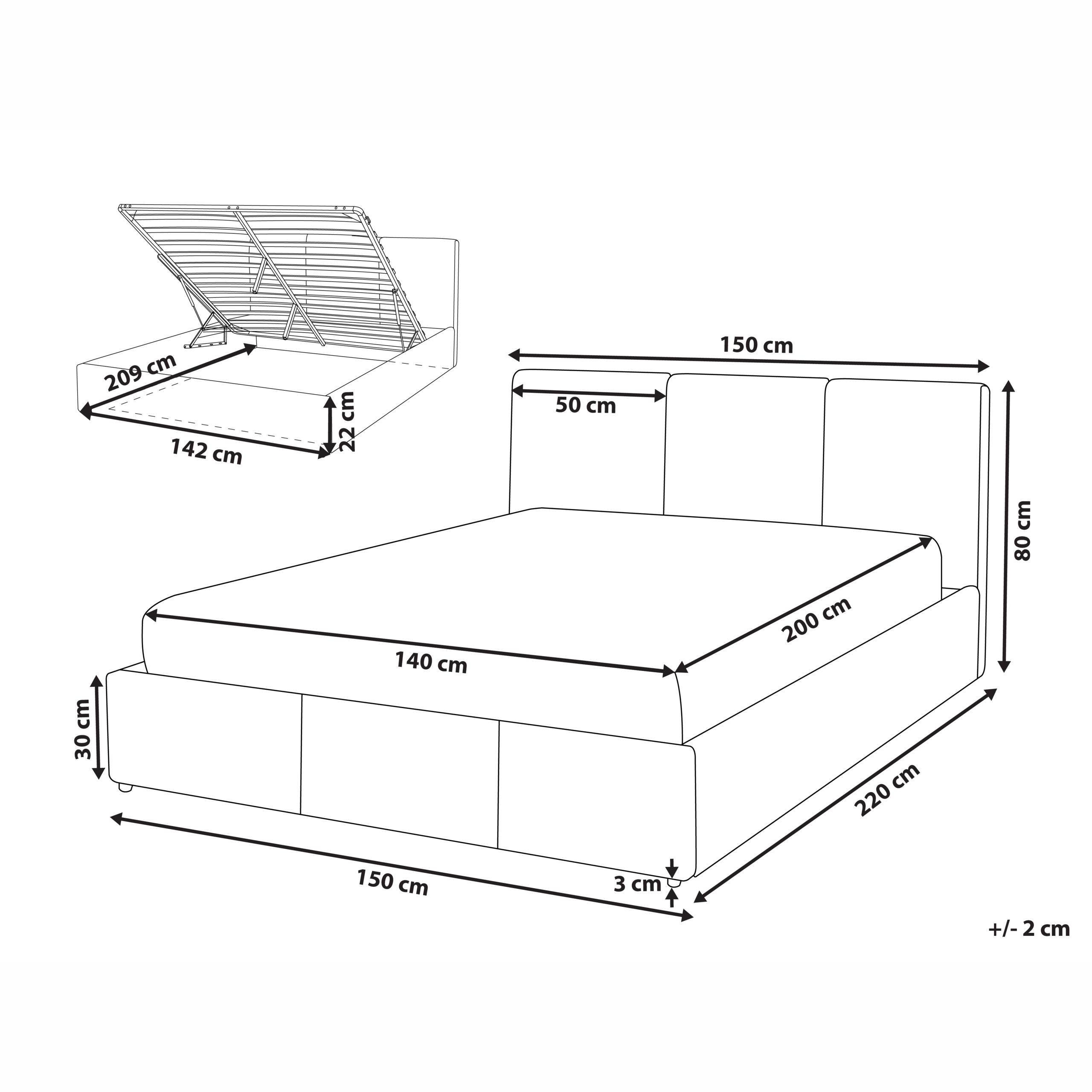 Nukkuma-ala: 140x200 cm