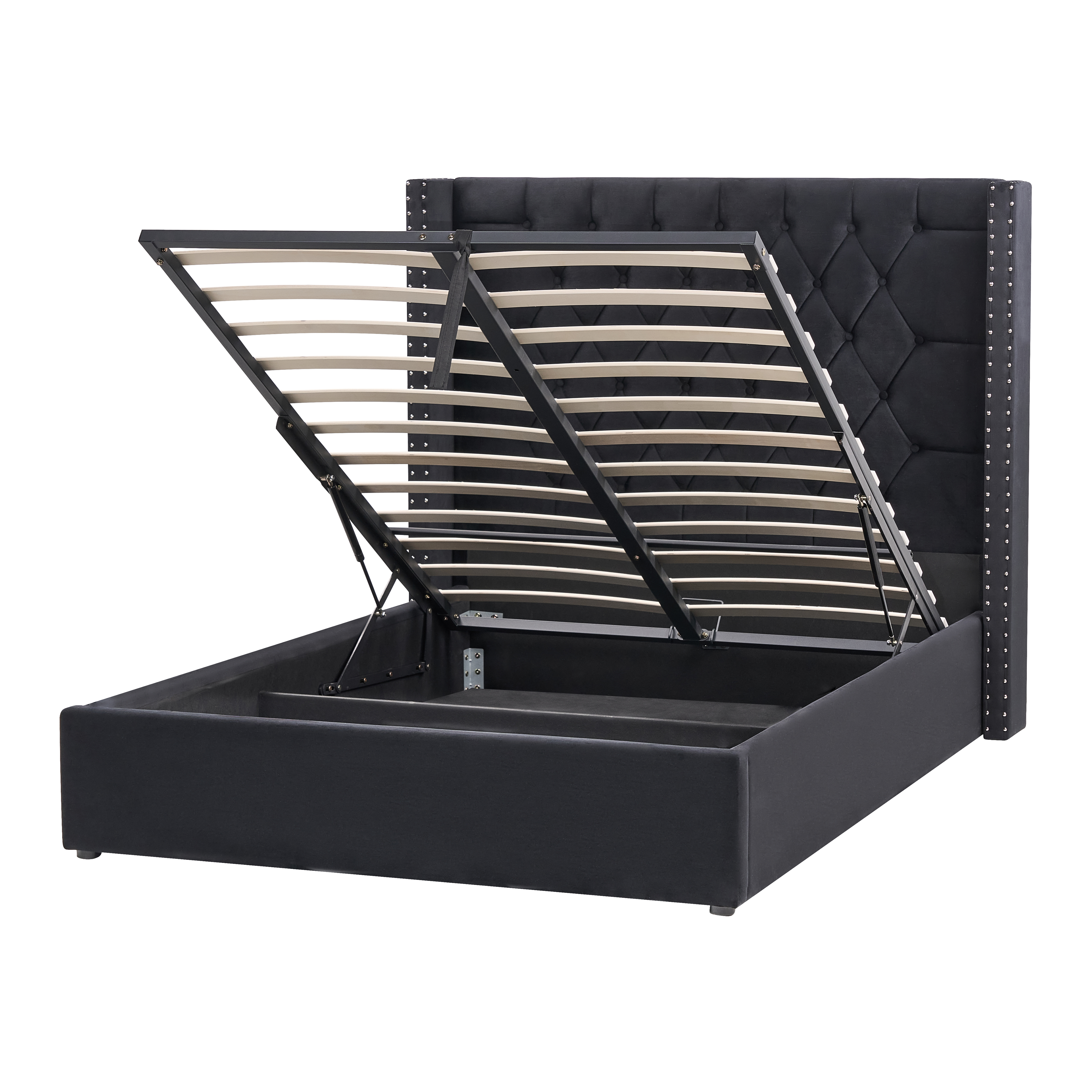 Tyylikäs nappikoristeltu parisänky säilytystilalla. Tuo makuuhuoneeseen ripaus glamouria tällä ylellisellä sängynrungolla. Sänky yhdistää vintage-muotoilun saumattomasti moderneihin vaikutteisiin, minkä ansiosta se sopii erinomaisesti sekä nykyaikaisiin että retrotyylisiin sisustuksiin. Kestävä puinen runko on verhoiltu mustalla samettikankaalla. Sälepohjan alla sijaitseva säilytystila tarjoaa helpon pääsyn ja paljon tilaa esimerkiksi petivaatteiden tai vaatteiden säilytykselle. Sängynpäätyä koristavat klassinen mutta tyylikäs nappituftaus sekä verhoilunaulat.