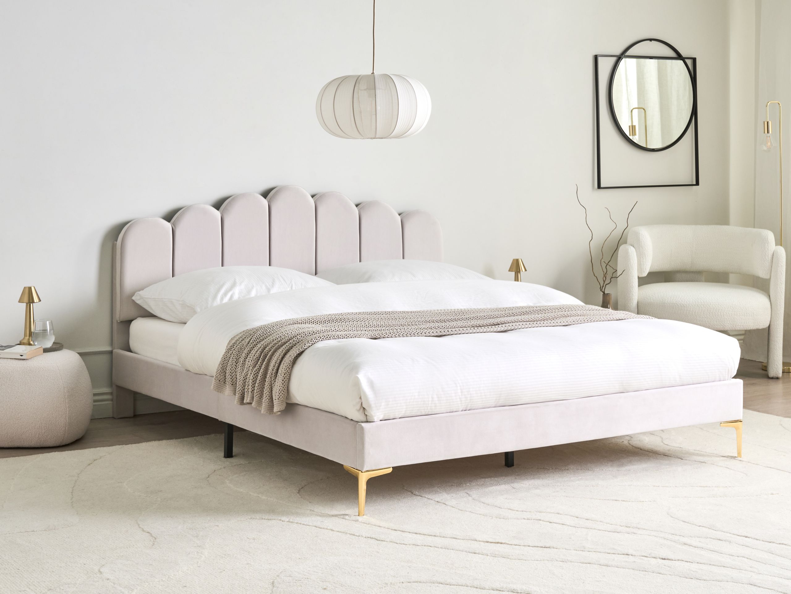 Sänky sametti SAUVIAN 160 x 200 cm Luonnonvalkoinen