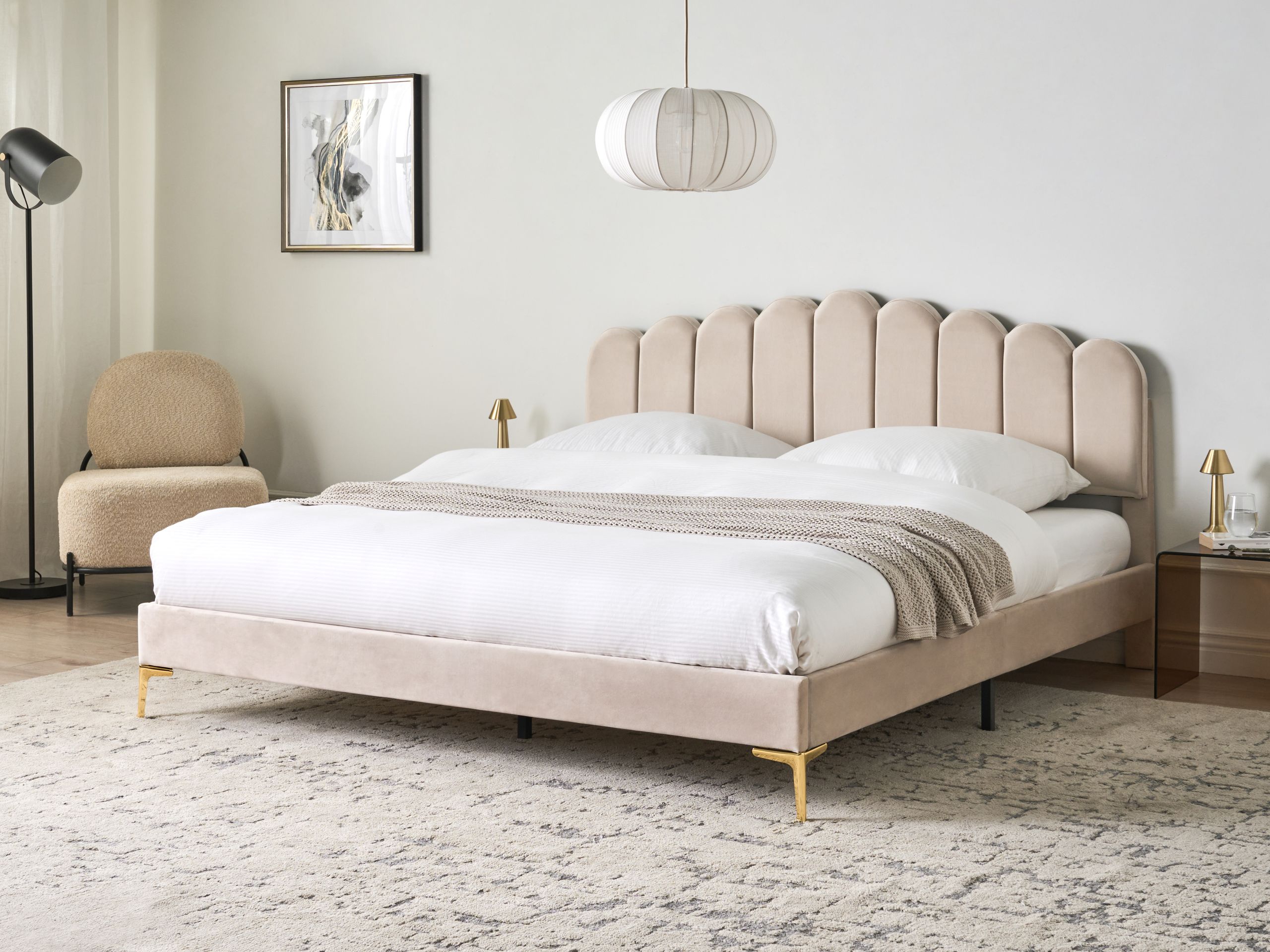 Sänky sametti SAUVIAN 180 x 200 cm Beige