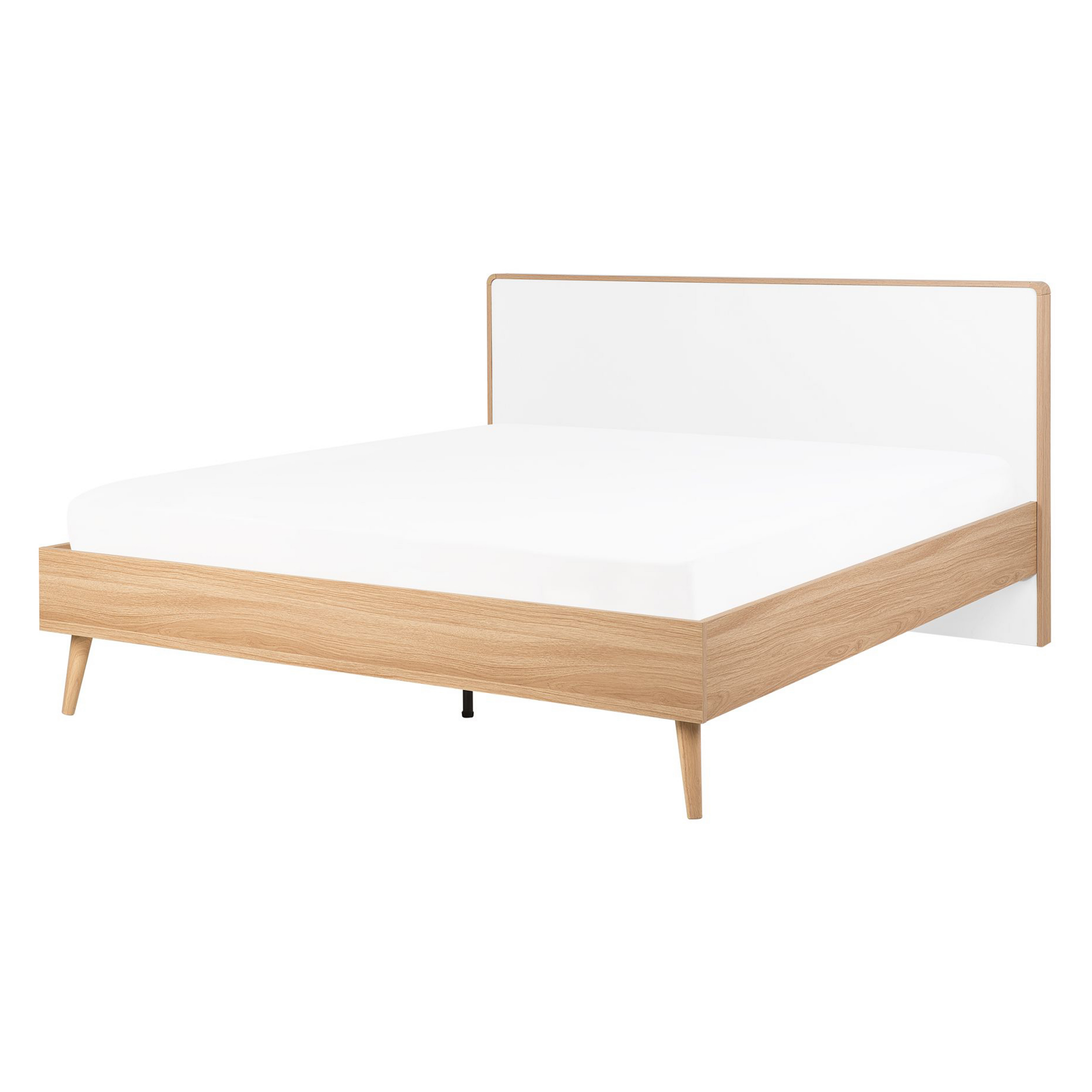 Skandinaavinen parivuode. Tuo skandinaavista tyyliä makuuhuoneeseesi tällä tyylikkäällä parisängyllä. Sen puhtaat linjat ja vaalea väripaletti tekevät vuoteesta minimalistisen lisän, joka tuo kodikasta ja rustiikkista tunnelmaa sisustukseen. Runko ja sängynpääty on valmistettu korkealaatuisesta ja kestävästä MDF-levystä, kun taas jalat ovat tukevaa kumipuuta. Puiset säleet takaavat mukavan unen ja oikeanlaisen patjan tuen.