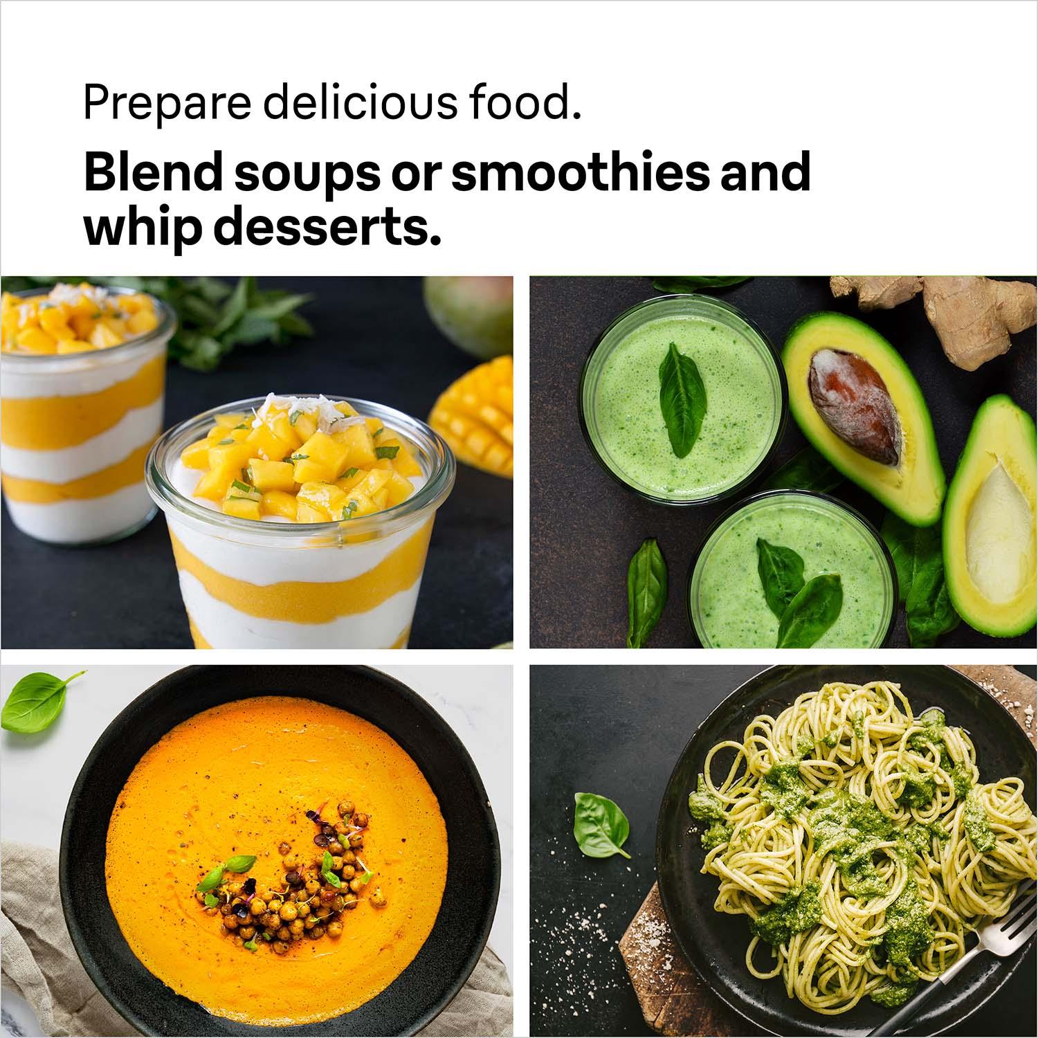 - Sisältää: Sauvasekoittimen, kannun, vispilän