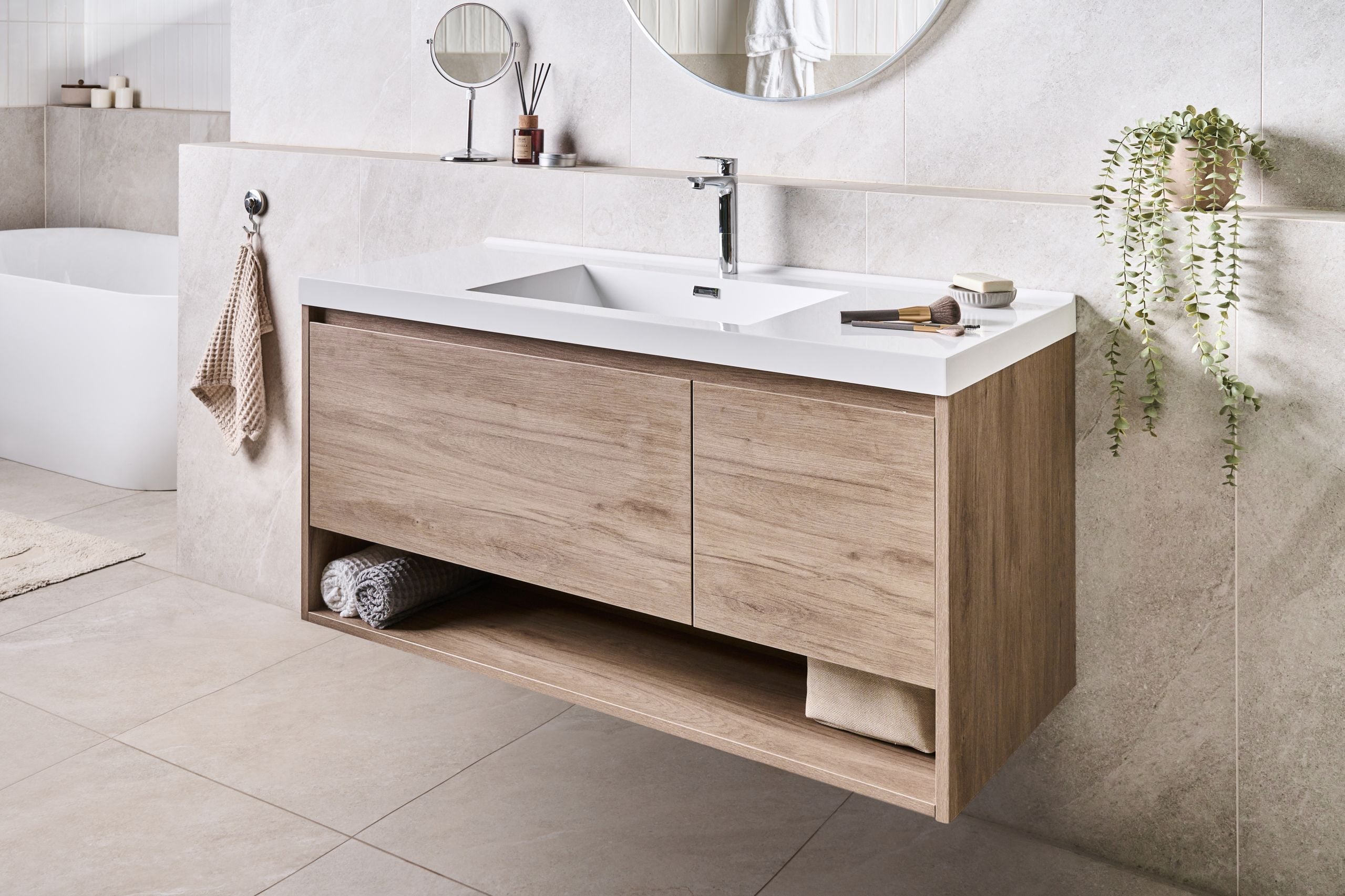 Seinäallaskaappi altaalla UMAYO 120 cm Vaaleanruskea
