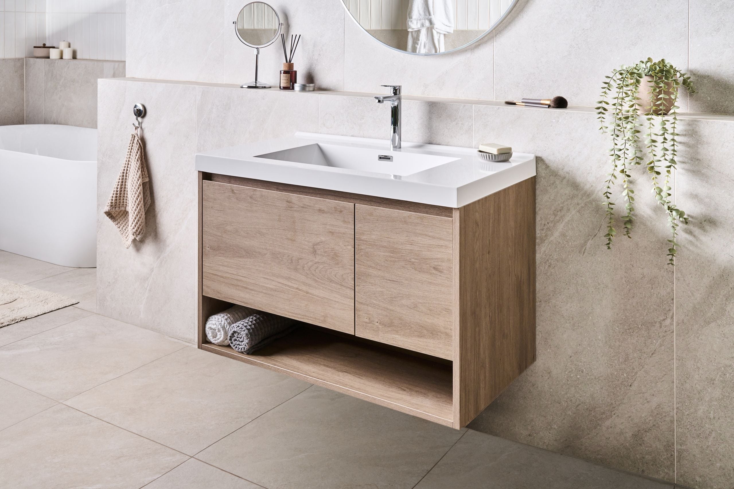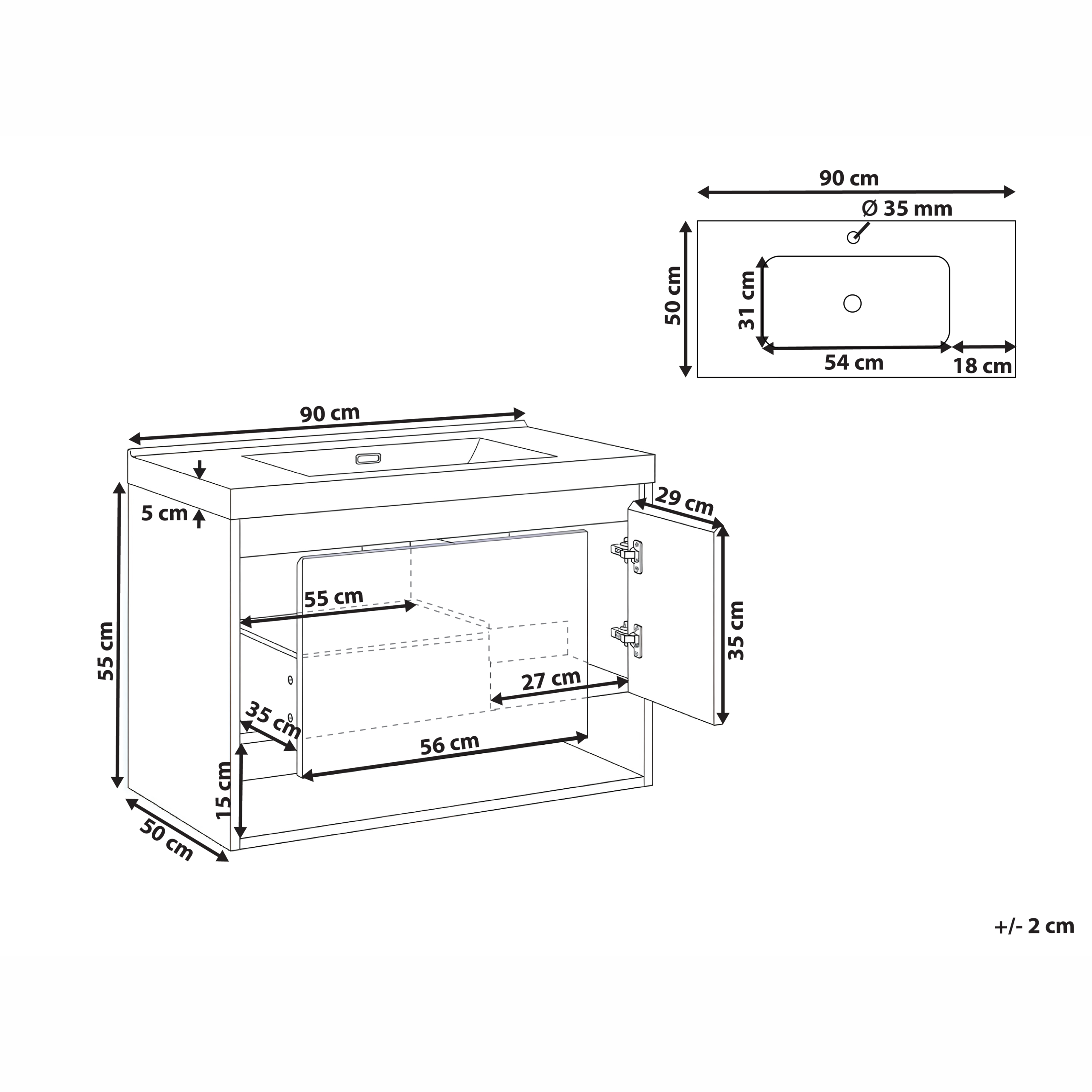 Seinäallaskaappi altaalla UMAYO 90 cm Vaaleanruskea