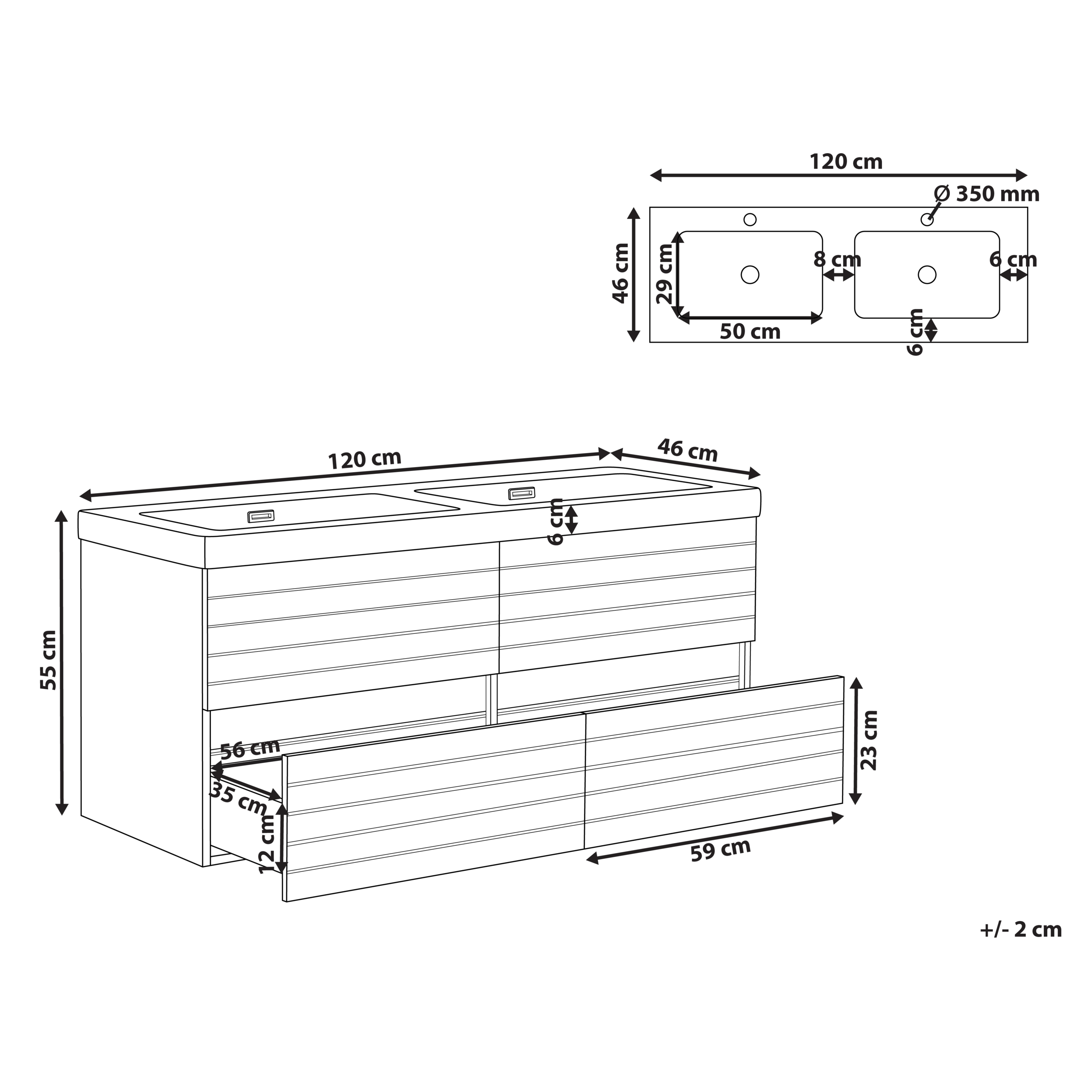 Seinäallaskaappi kaksoispesualtaalla URUCU 120 cm Vaaleanruskea