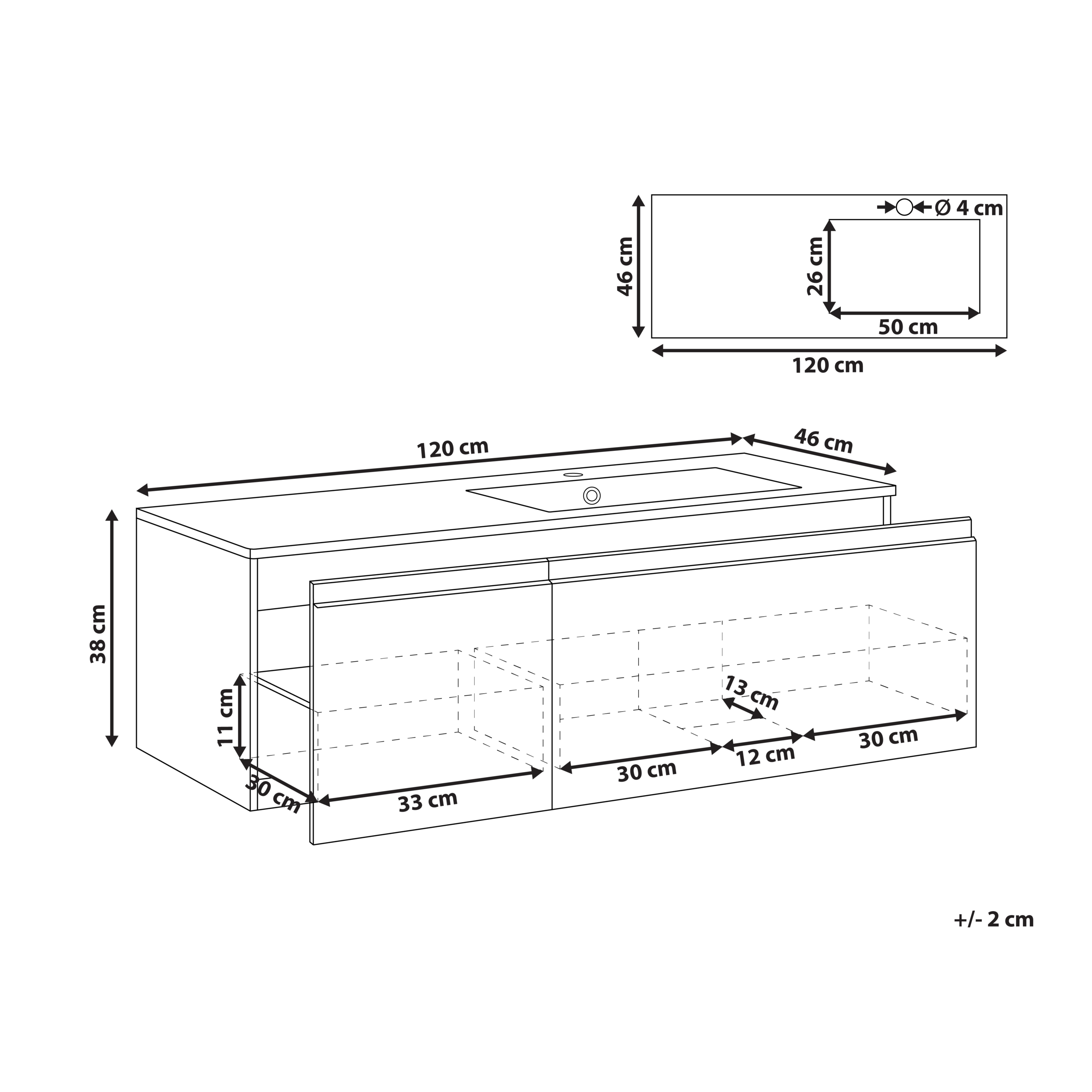 Seinäallaskaappi pesualtaalla COROICO 120 cm Valkoinen