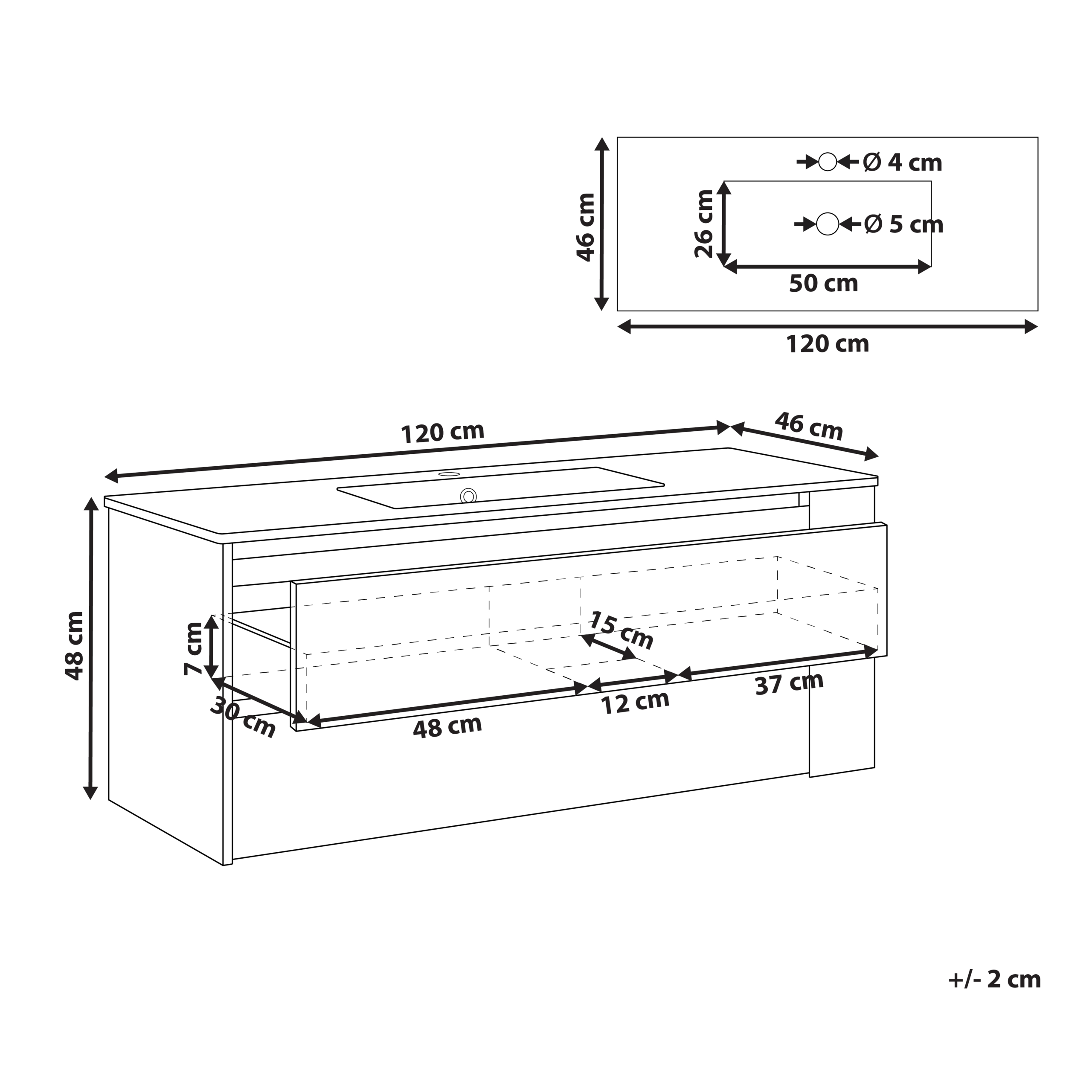 Seinäallaskaappi pesualtaalla MANCORA 120 cm Ruskeanharmaa