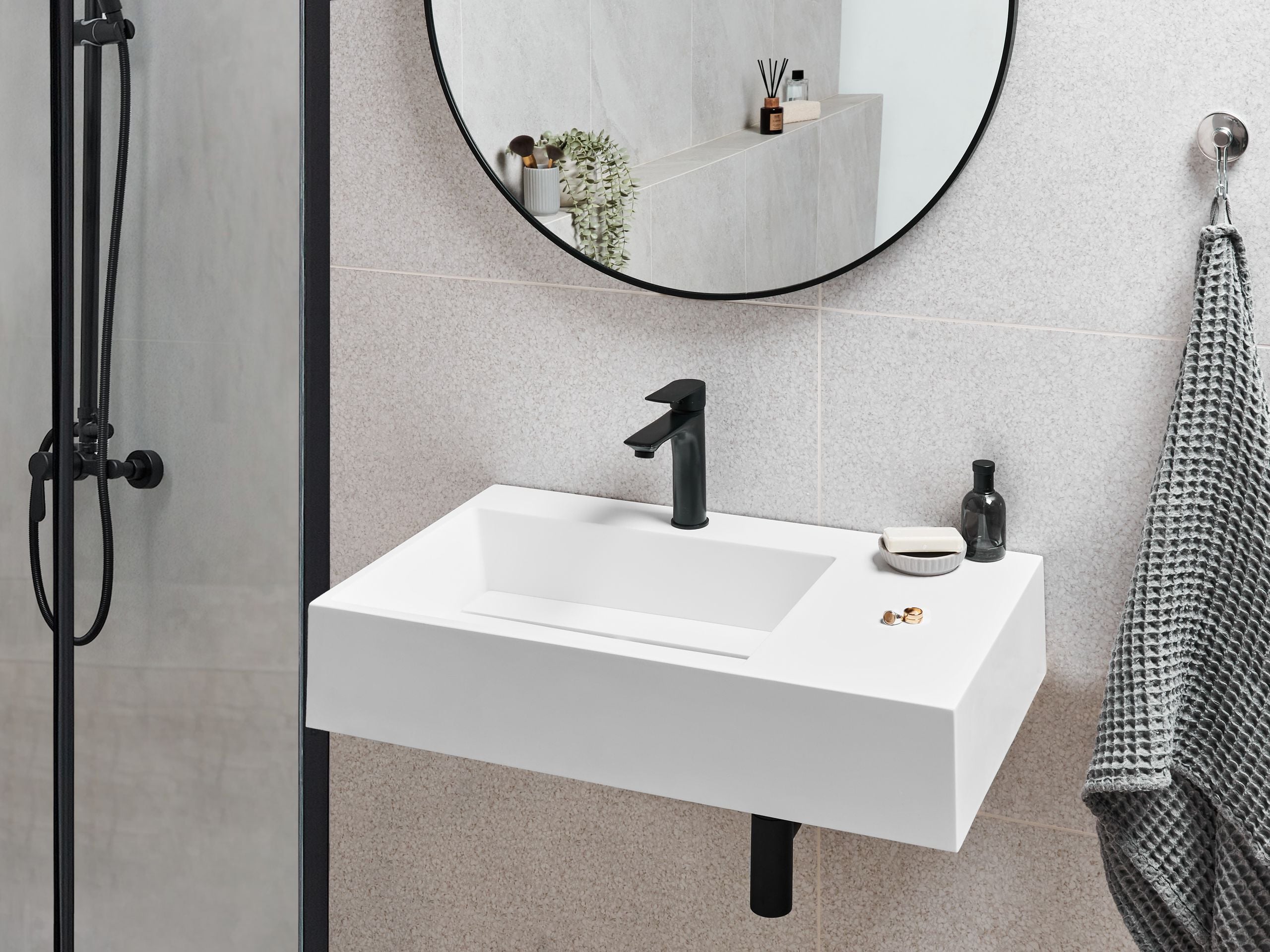 Moderni suorakulmainen allas kylpyhuoneeseen. Tämä upea, mattavalkoinen seinään kiinnitettävä pesuallas tuo rohkean ja nykyaikaisen ilmeen jokaiseen kylpyhuoneeseen. Laadukkaasta mineraalivalusta valmistetussa altaassa on kestävä, huokoseton pinta, joka on helppo puhdistaa ja kestää päivittäistä käyttöä. Minimalistinen muotoilu sisältää kätevän pinnan, joka pitää hammasharjan, saippuan tai muut välttämättömät tarvikkeet käden ulottuvilla. Se tarjoaa täydellisen yhdistelmän tyyliä ja käytännöllisyyttä moderneihin sisustuksiin.