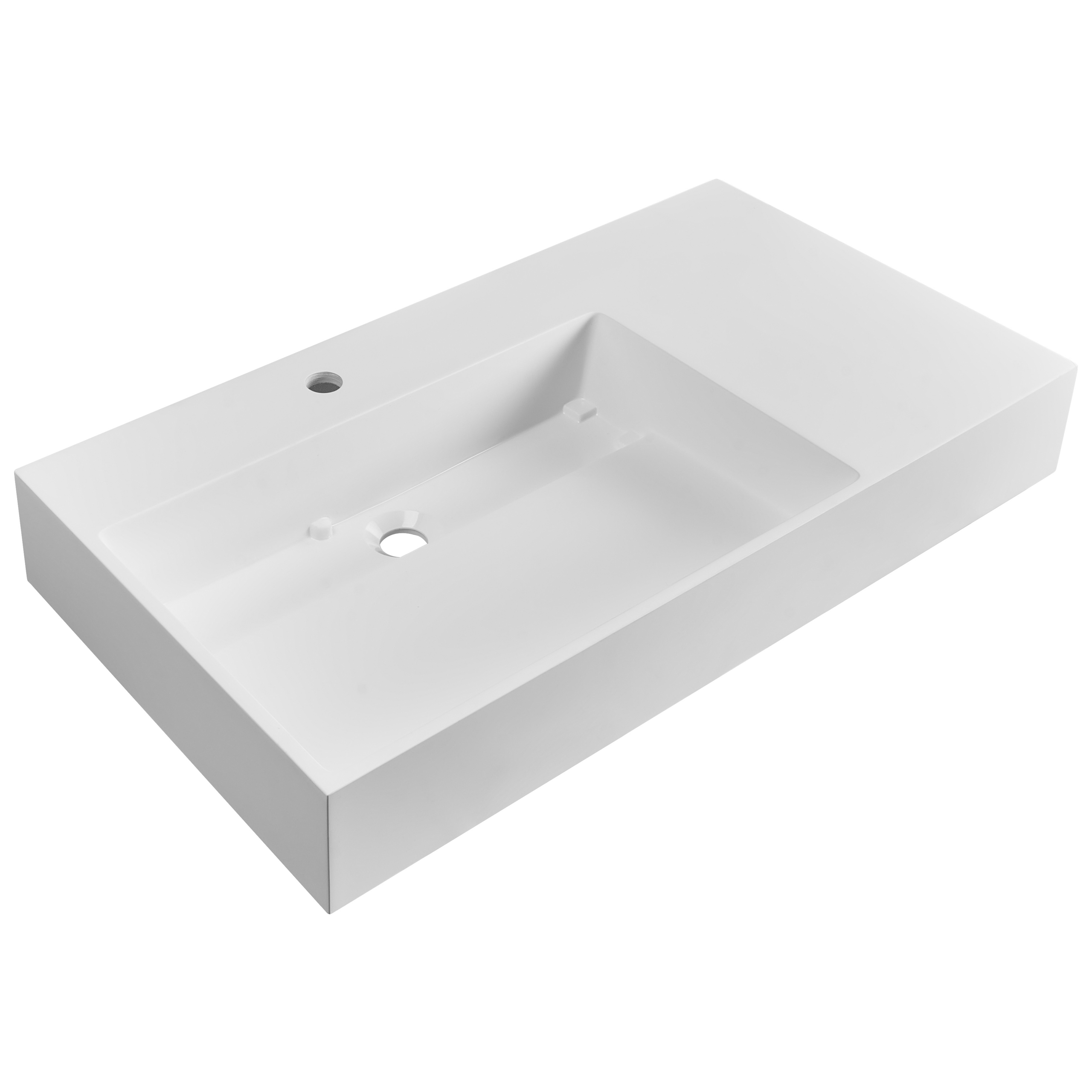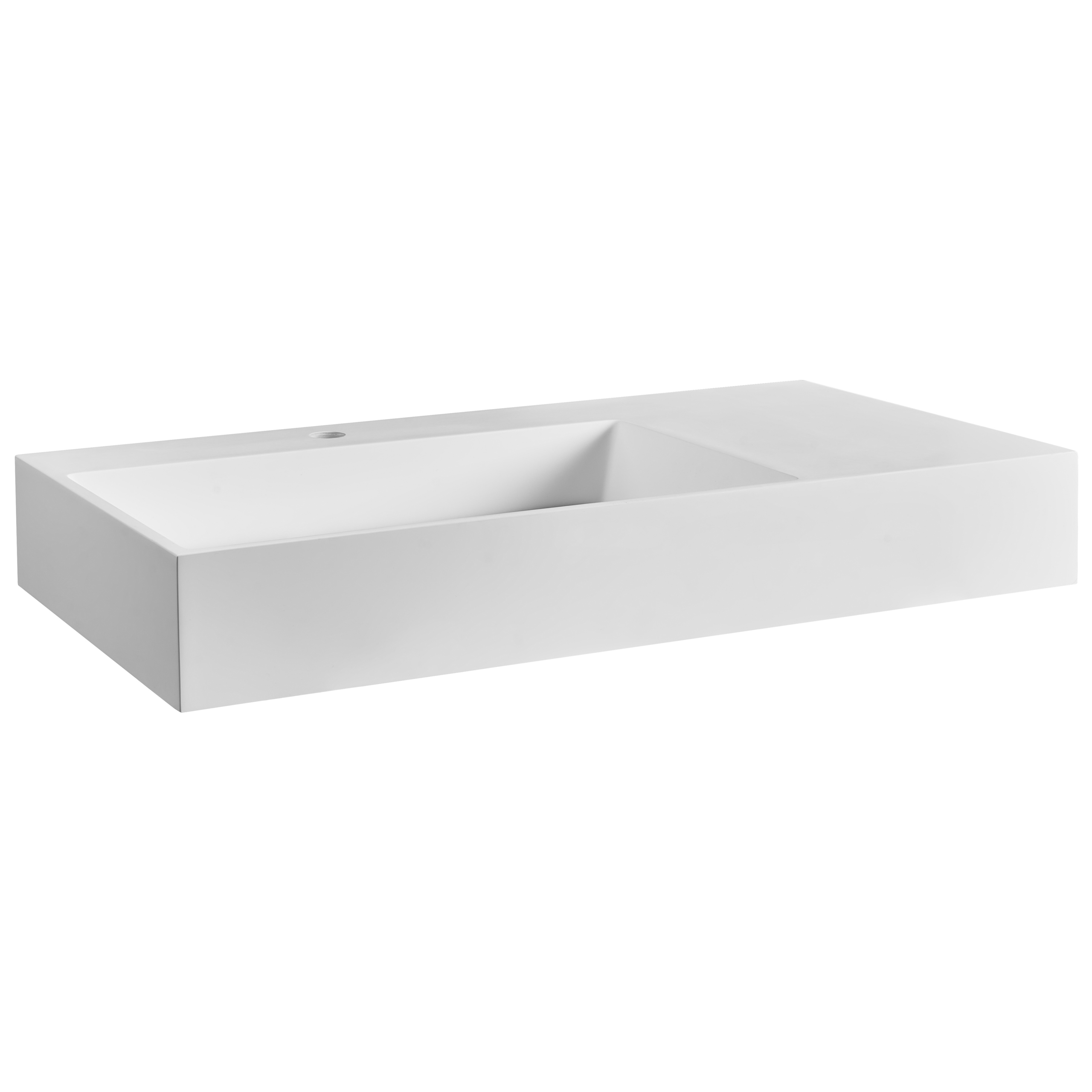 Moderni suorakulmainen allas kylpyhuoneeseen. Tämä upea, mattavalkoinen seinään kiinnitettävä pesuallas tuo rohkean ja nykyaikaisen ilmeen jokaiseen kylpyhuoneeseen. Laadukkaasta mineraalivalusta valmistetussa altaassa on kestävä, huokoseton pinta, joka on helppo puhdistaa ja kestää päivittäistä käyttöä. Minimalistinen muotoilu sisältää kätevän pinnan, joka pitää hammasharjan, saippuan tai muut välttämättömät tarvikkeet käden ulottuvilla. Se tarjoaa täydellisen yhdistelmän tyyliä ja käytännöllisyyttä moderneihin sisustuksiin.