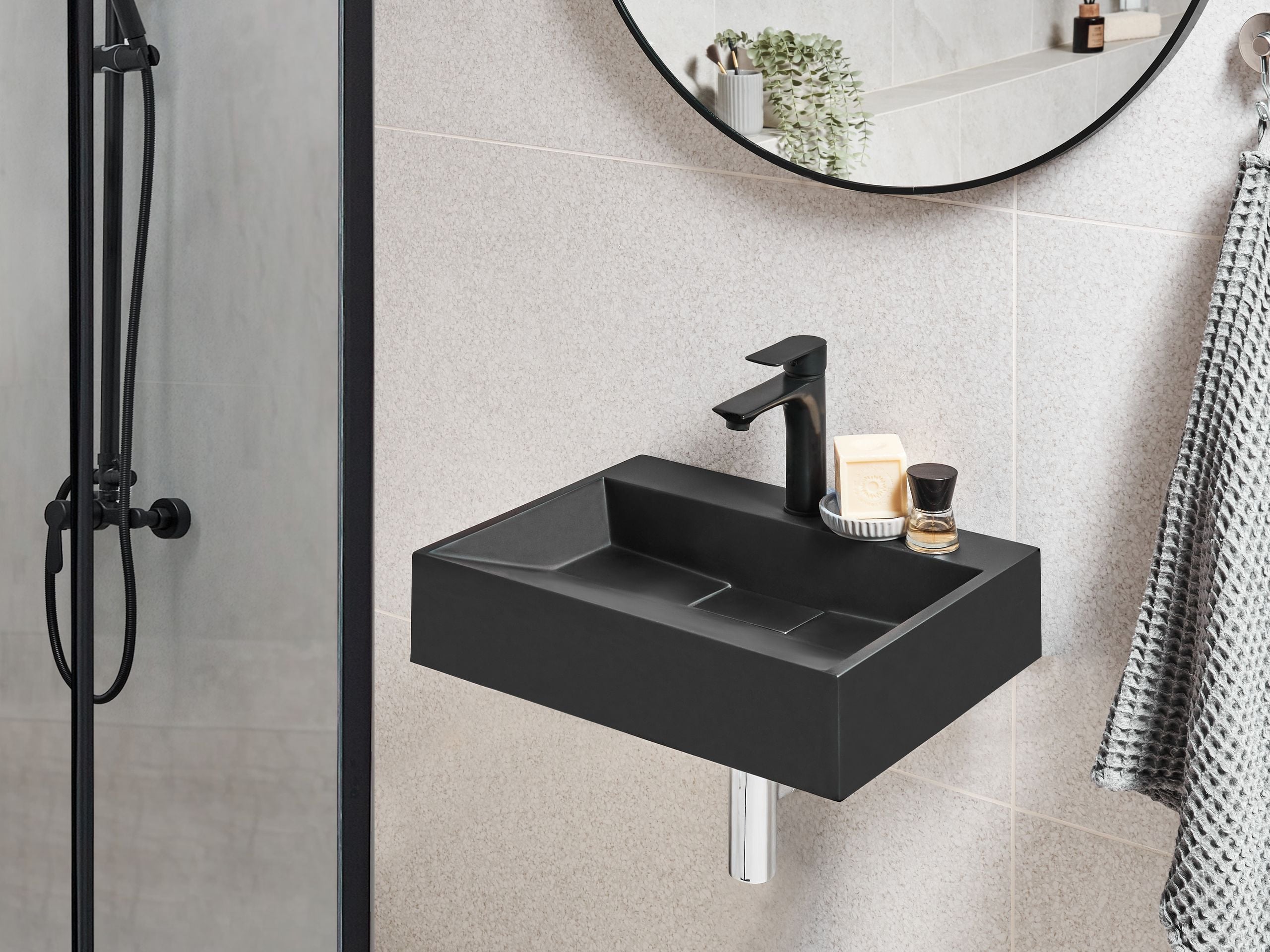 Seinään kiinnitettävä pesuallas QUENKO 50 x 38 cm mineraalivalu Musta
