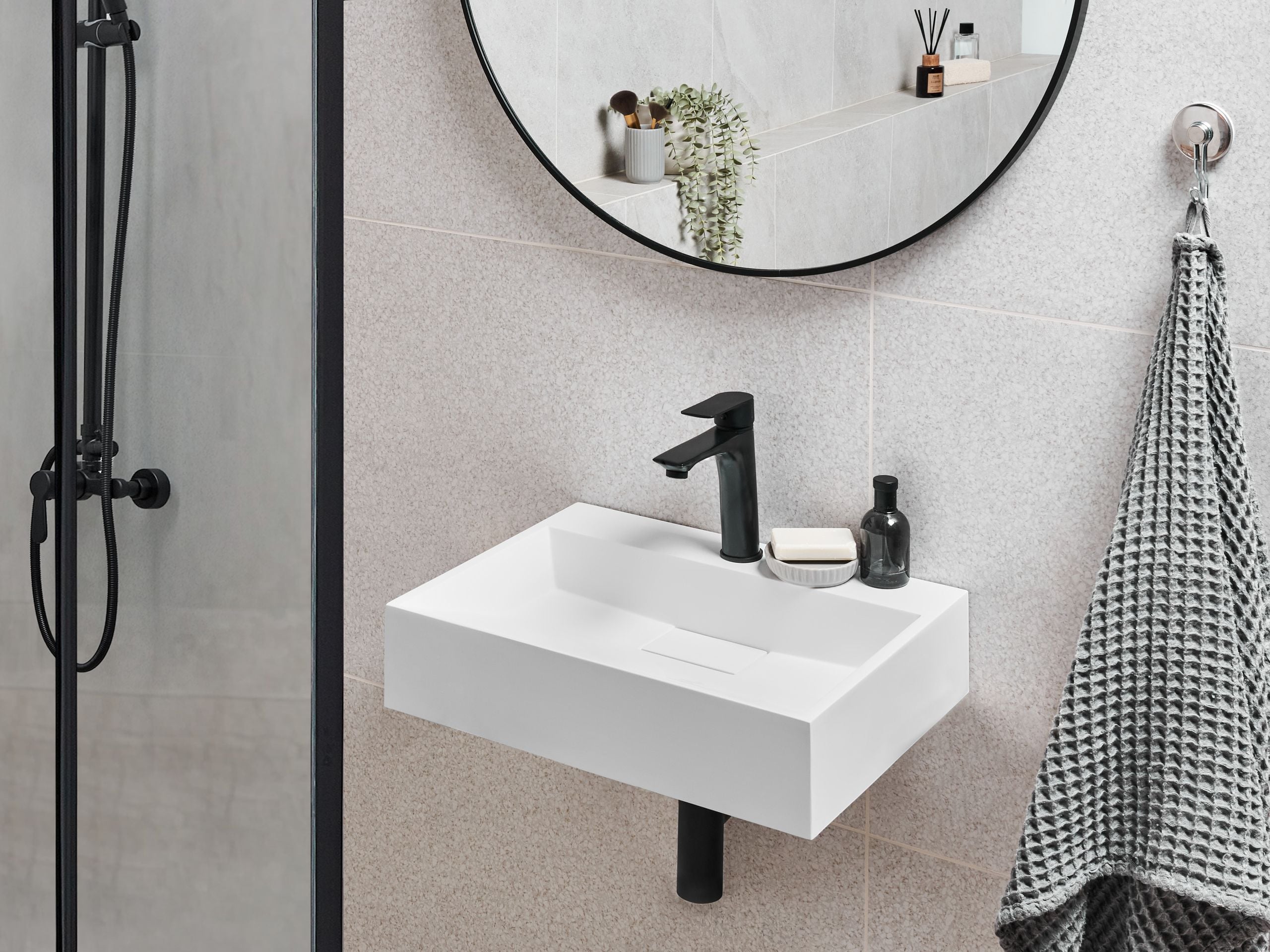 Suorakulmainen seinään kiinnitettävä allas. Tämä tyylikäs, seinään kiinnitettävä pesuallas yhdistää minimalistisen muotoilun ja toimivuuden, minkä ansiosta se sopii täydellisesti erikokoisiin moderneihin kylpyhuoneisiin. Korkealaatuisesta mineraalivalusta valmistetussa altaassa on sileä ja kestävä mattapinta, joka on helppo puhdistaa ja kestää päivittäistä käyttöä. Kompakti muoto säästää tilaa tyylistä tinkimättä ja tuo sisustukseen selkeää, nykyaikaista ilmettä.