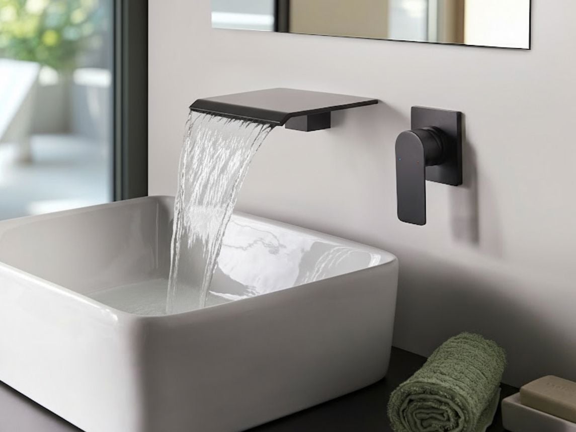 Moderni pesualtaan vesiputoushana. Tuo kylpyhuoneeseesi ripaus nykyaikaista luonnetta tällä tyylikkäällä, kaksiosaisella seinään asennettavalla pesuallashanalla. Kestävästä messingistä valmistetussa hanassa on minimalistinen muotoilu ja yksi vipu, jota on kätevä ja helppo hallita. Vesiputousnokka lisää rauhoittavaa, kylpylätyyppistä vaikutelmaa, joka saa tilan tuntumaan sekä modernilta että tyylikkäältä. Se tarjoaa yksinkertaisen tavan piristää tilaa jollakin, joka näyttää hyvältä ja toimii kauniisti.