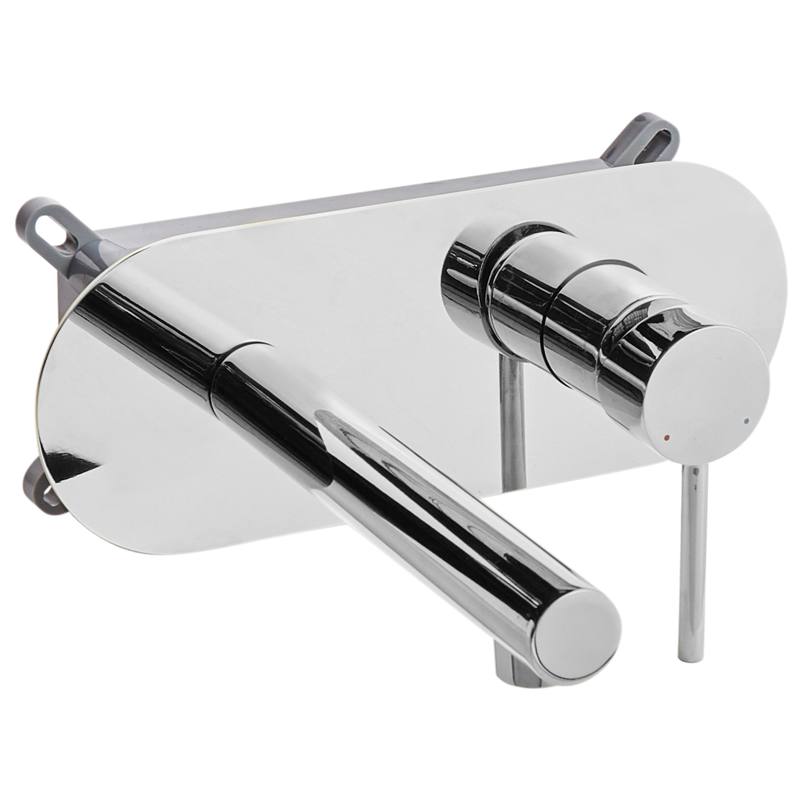 Tyylikäs pesualtaan sekoitushana. Tämä seinään kiinnitettävä pesualtaan sekoitushana on tyylikäs ja käytännöllinen lisä mihin tahansa moderniin kylpyhuoneeseen. Yhden kahvan säädöllä se tekee lämpötilan säätämisestä nopeaa ja helppoa, auttaen säästämään vettä päivittäin. Siistillä, yksilevyisellä asennuksella suunniteltu hana pitää huoneen ilmeen selkeänä ja huoliteltuna. Se on valmistettu korkealaatuisesta messingistä, joten se on kestävä.